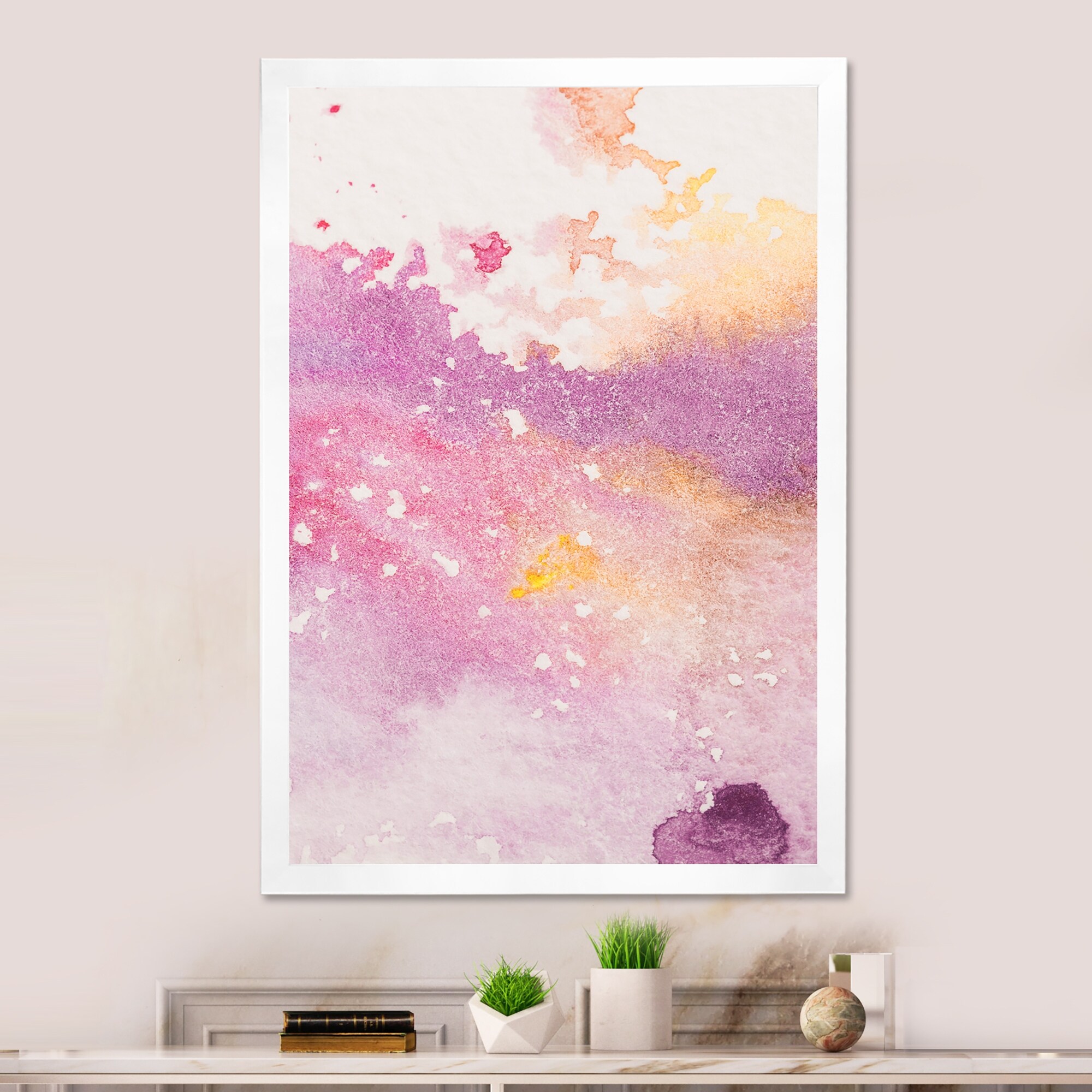 Designart "Pink And Yellow Misty Abstract" Modern Framed artwork