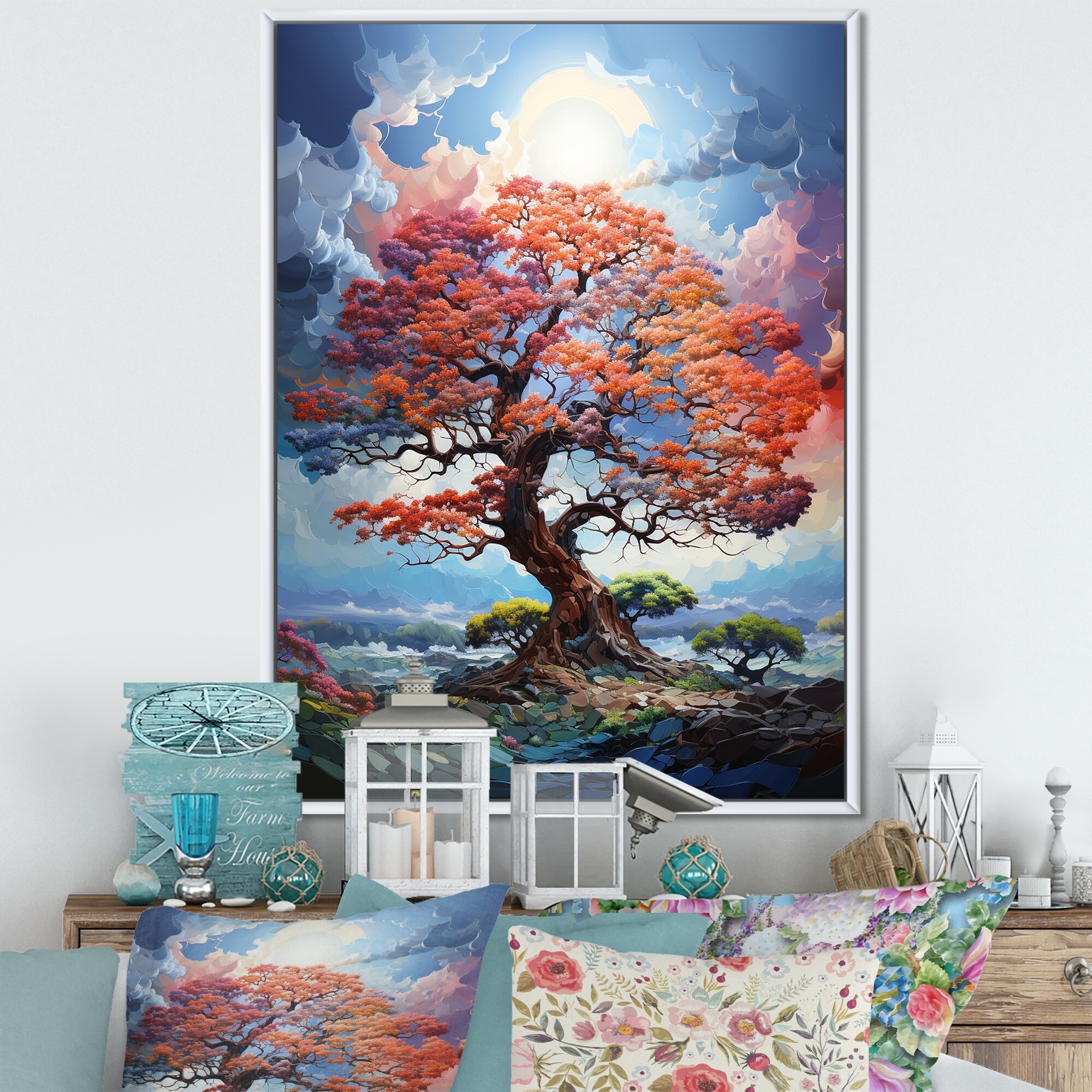 Designart "Colorful Oak Tree Oak Symphony II" Tree Oak Framed Canvas Prints
