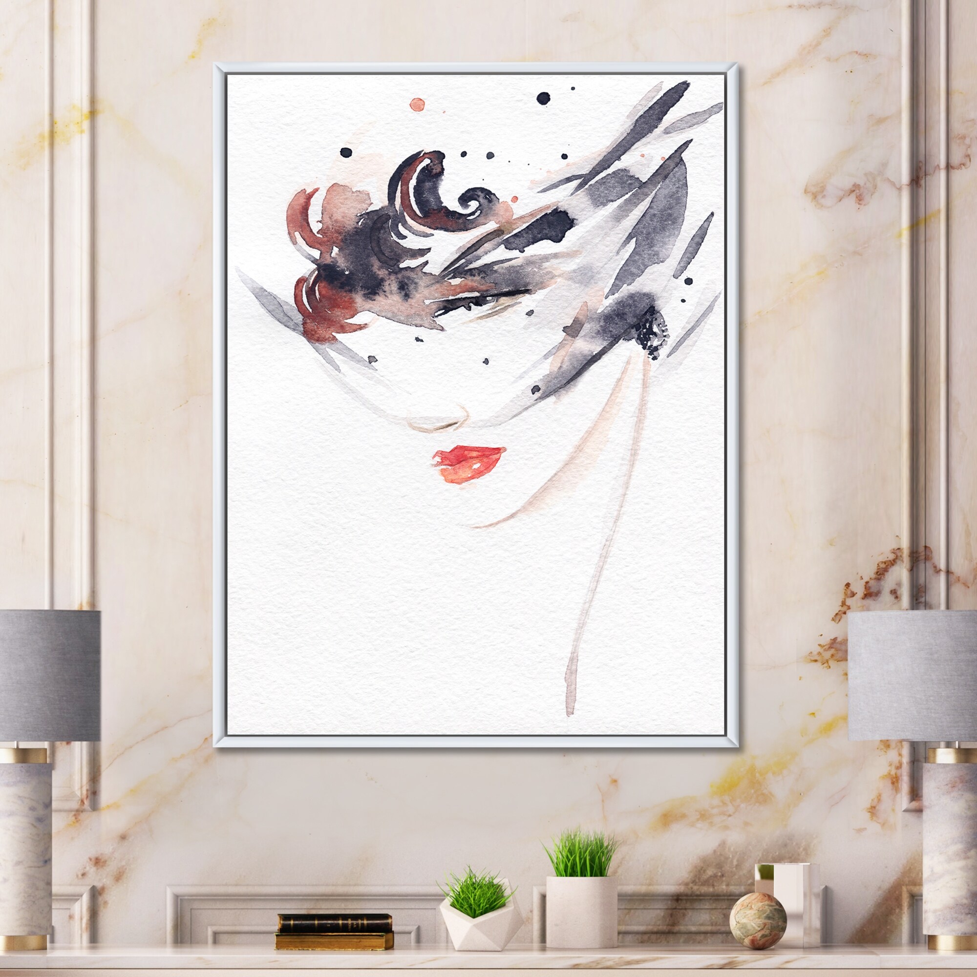 Designart "Venice Mask Fashion Woman" Glam Framed Canvas artwork