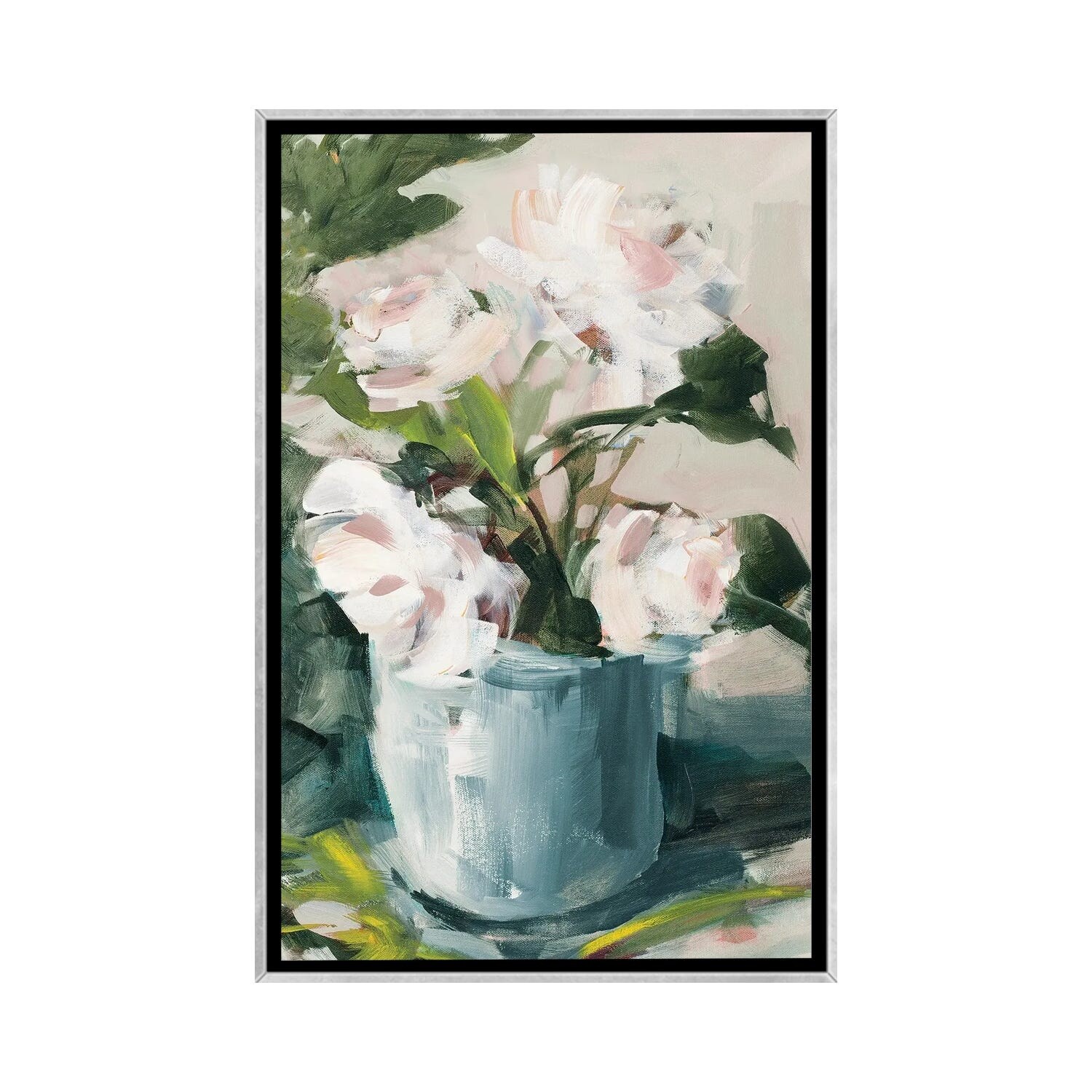 iCanvas "Peonies in Blue Vase" by Jane Slivka Framed