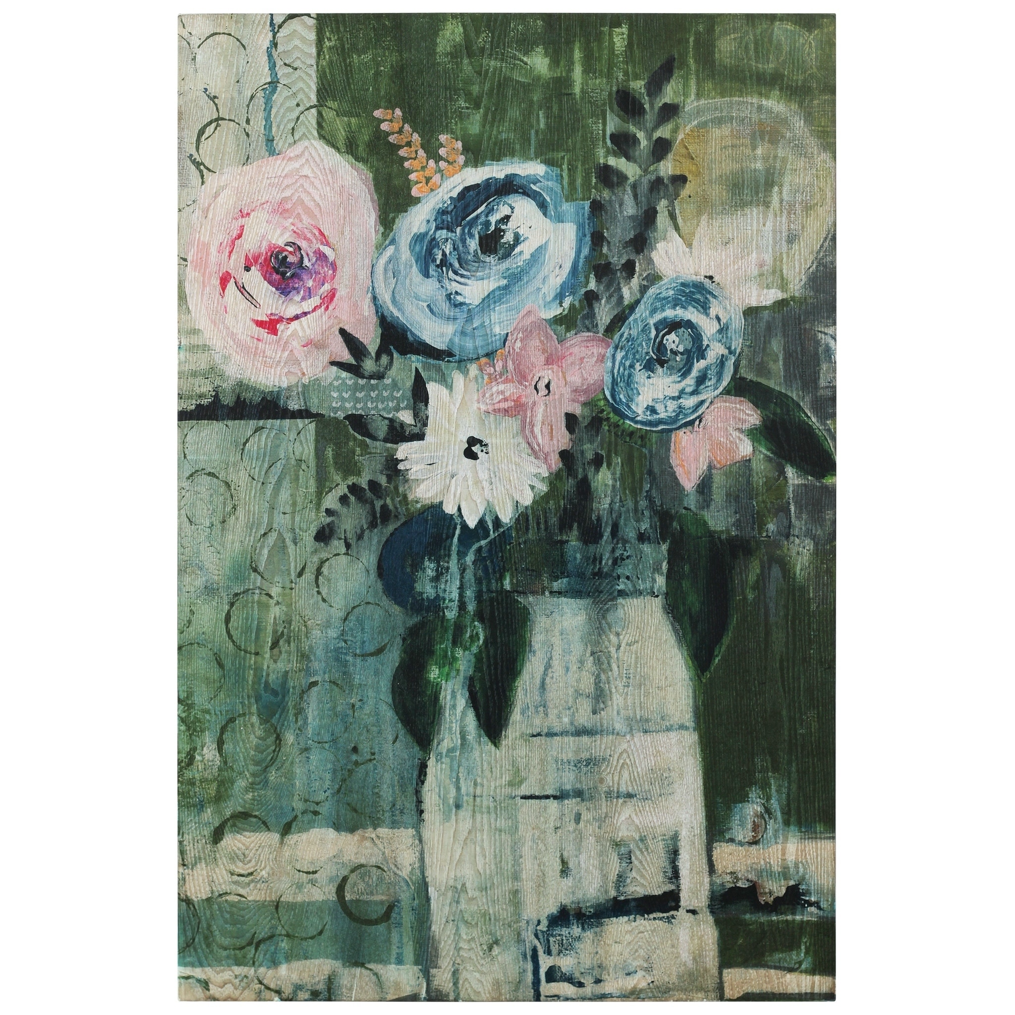 Modern Floral Circle Wall Art Giclee Printed on Hand Finished Ash Wood