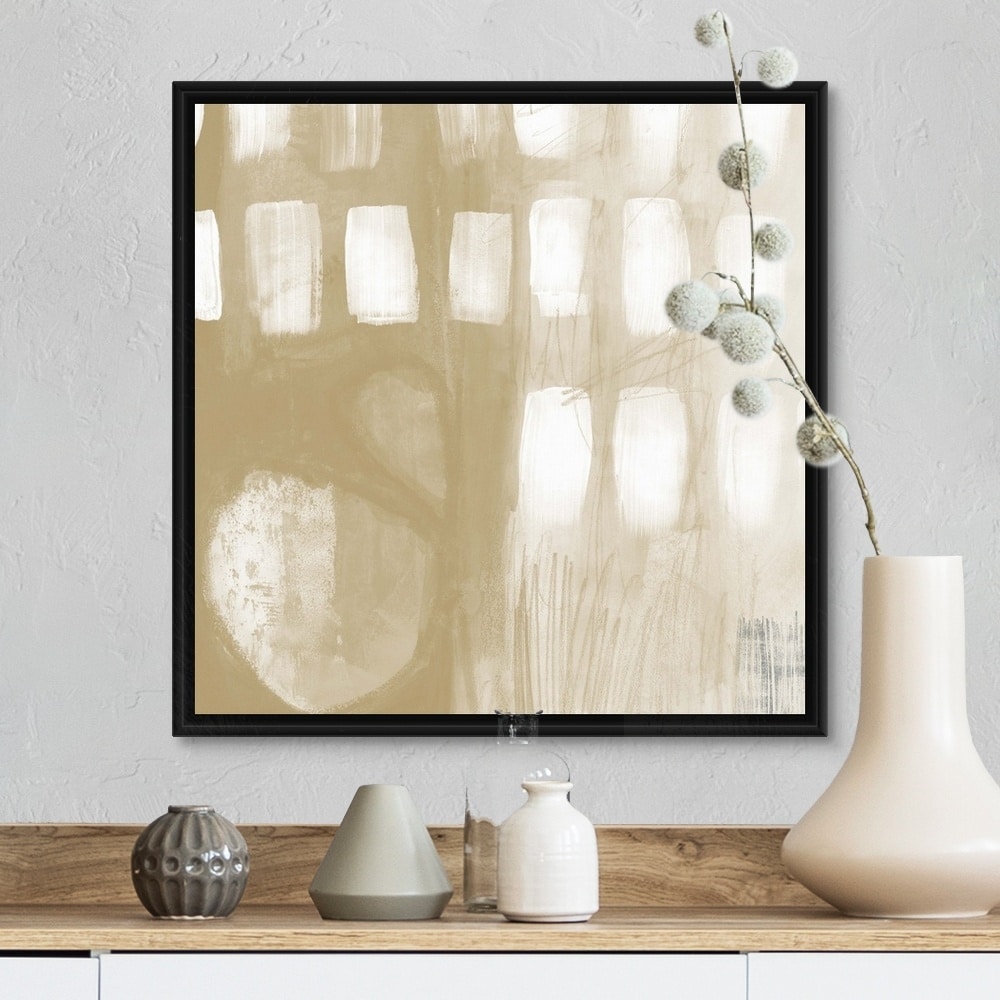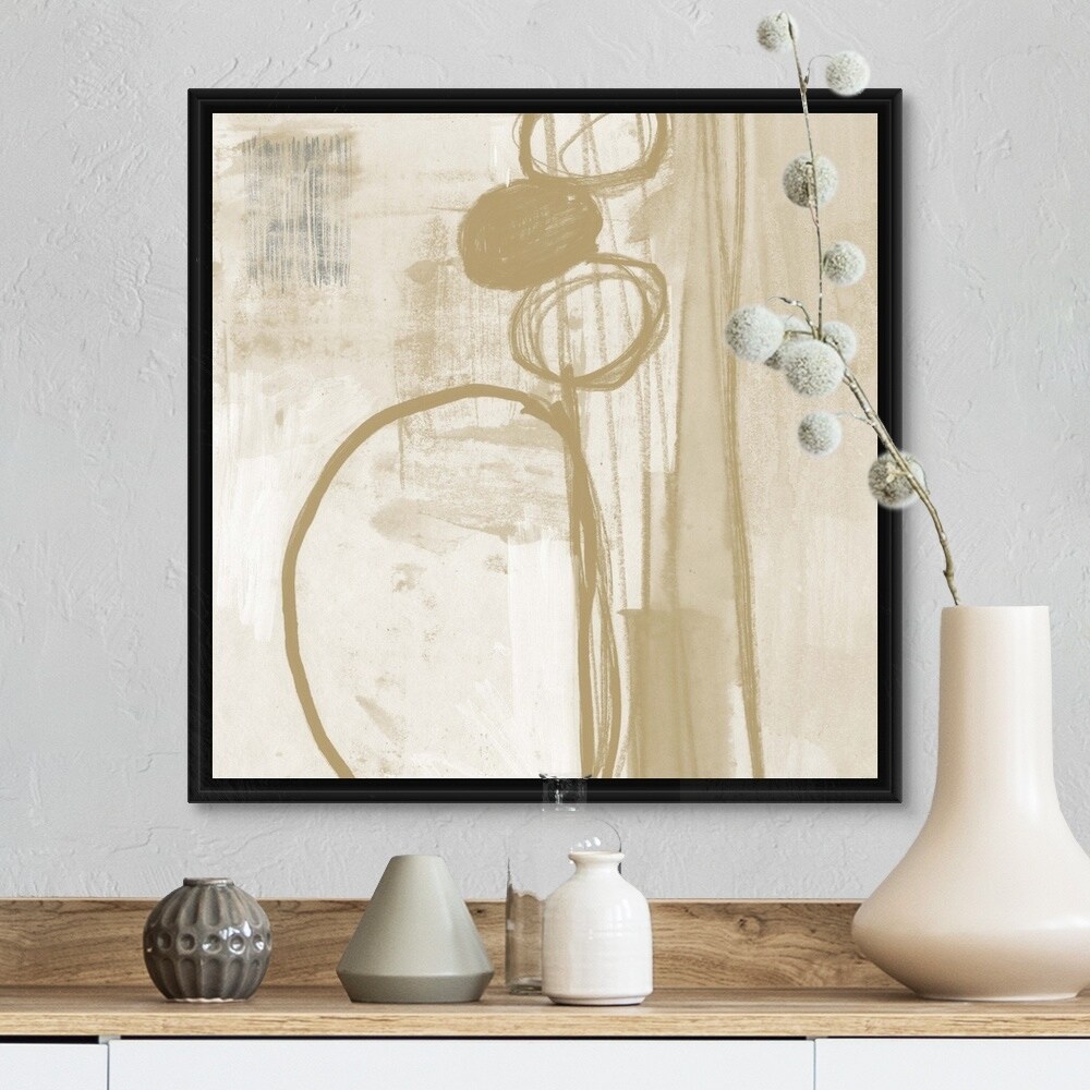 "Contemporary Camel And Ash Abstract VI" Black Float Frame Canvas Art