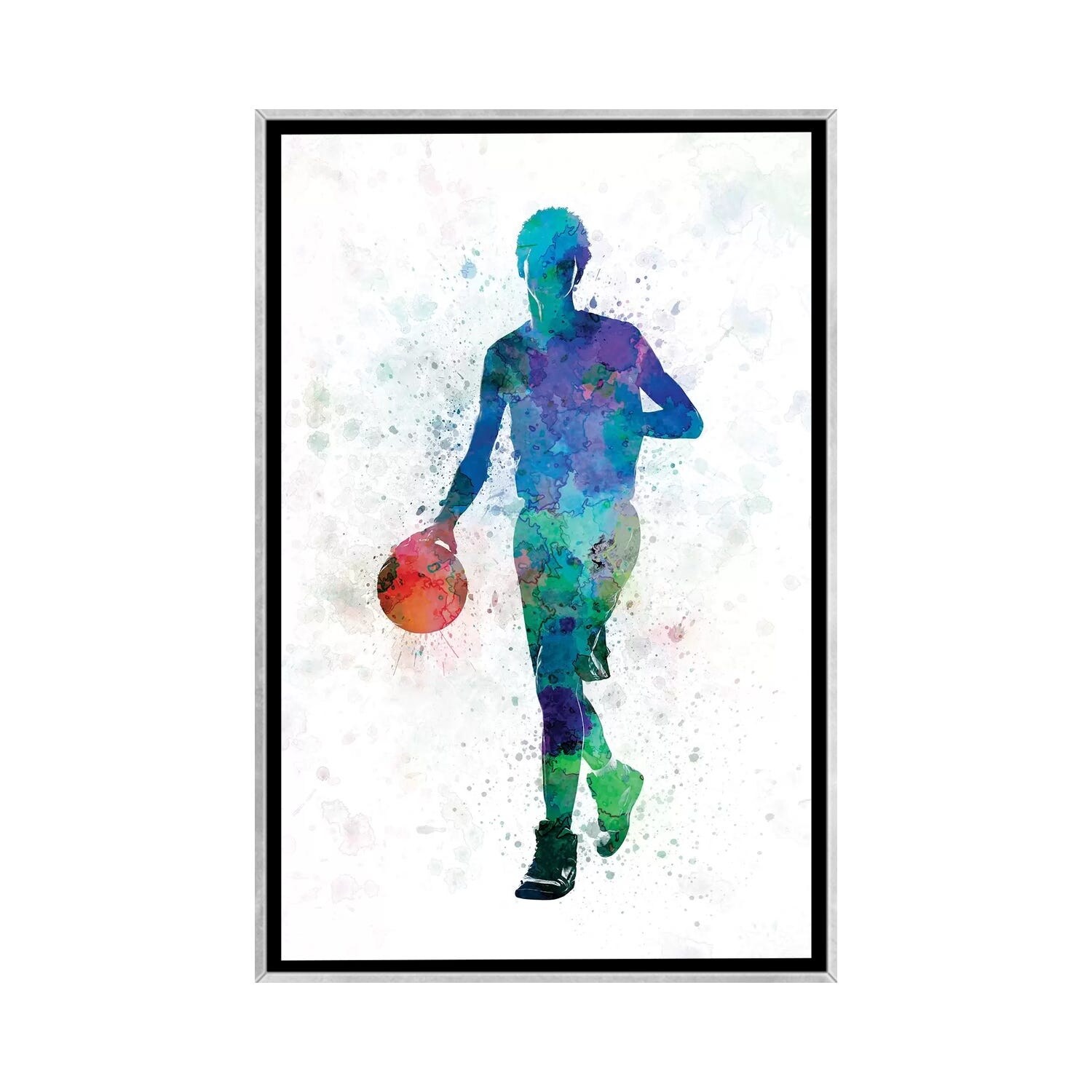 iCanvas "Young Man Basketball Player Dribbling" by Paul Rommer Framed