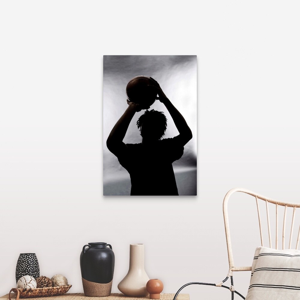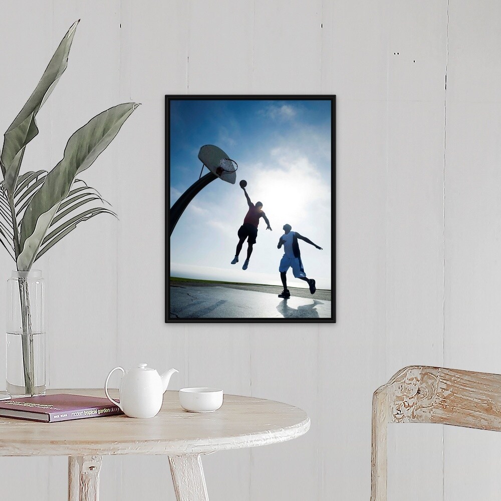 "Silhouette of men playing basketball" Black Float Frame Canvas Art