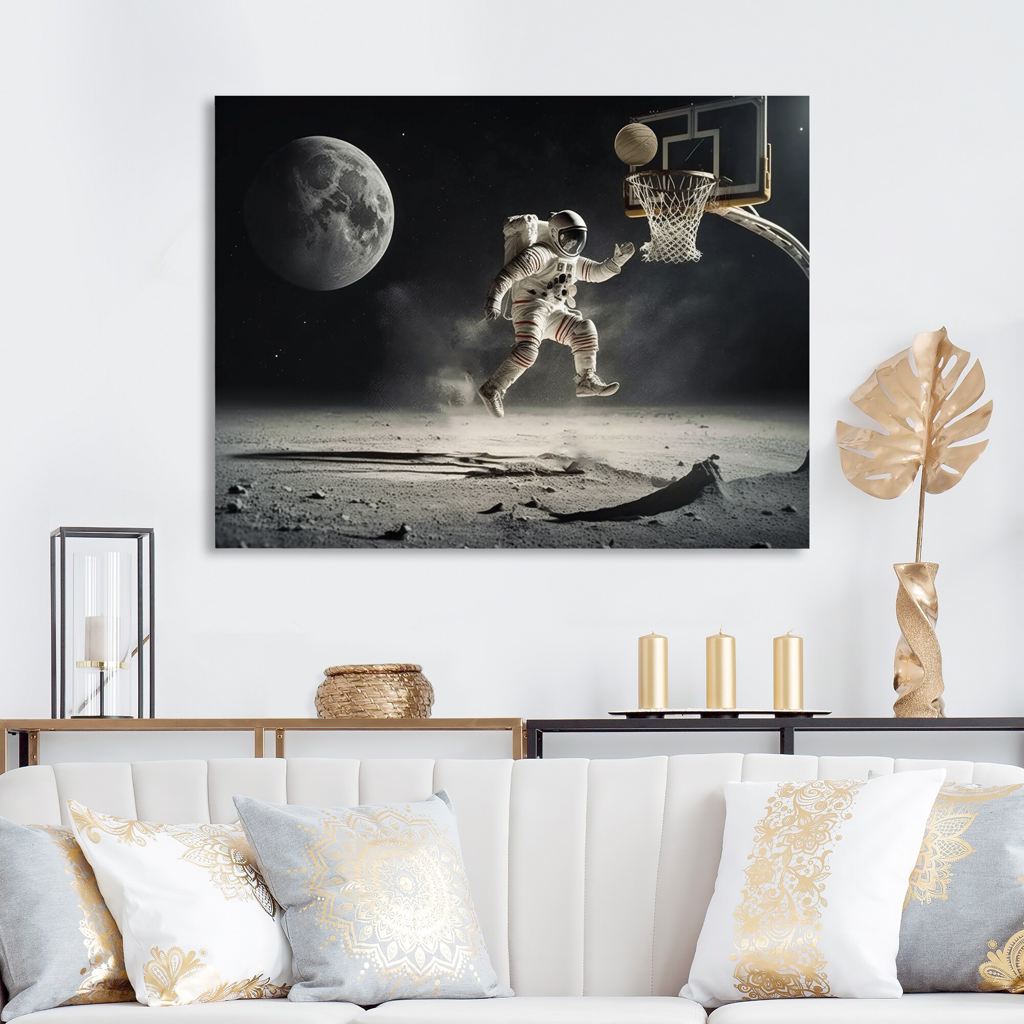 Designart 'Easy 2 Point on the Moon I' Sport Basketball Metal Wall Art