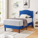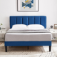 VECELO, Upholstered Platform Bed Frame with Nailhead Headboard Twin Full Queen Size Bed-Blue