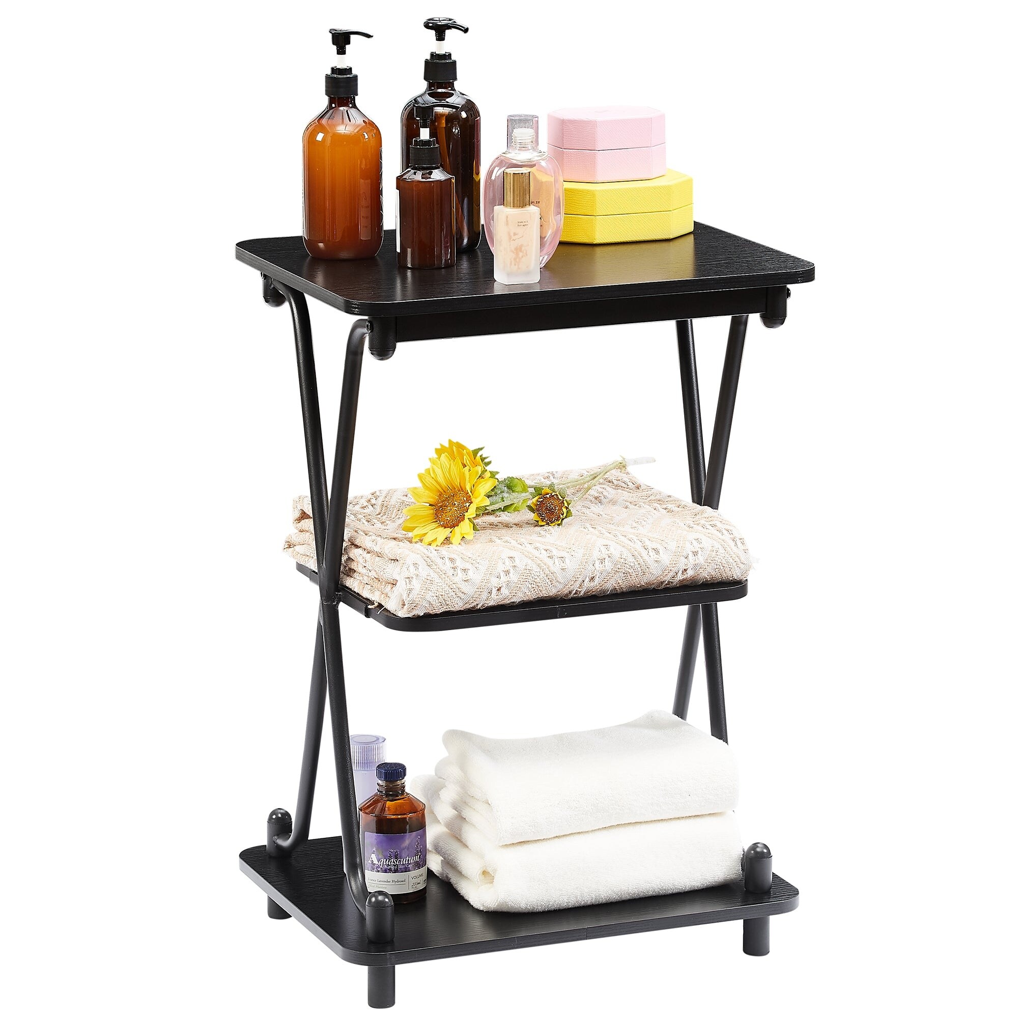 Modern 3-Tier Bedside/End Table with Storage Shelf, X-Shaped Design Nightstand and Sofa Side End Table