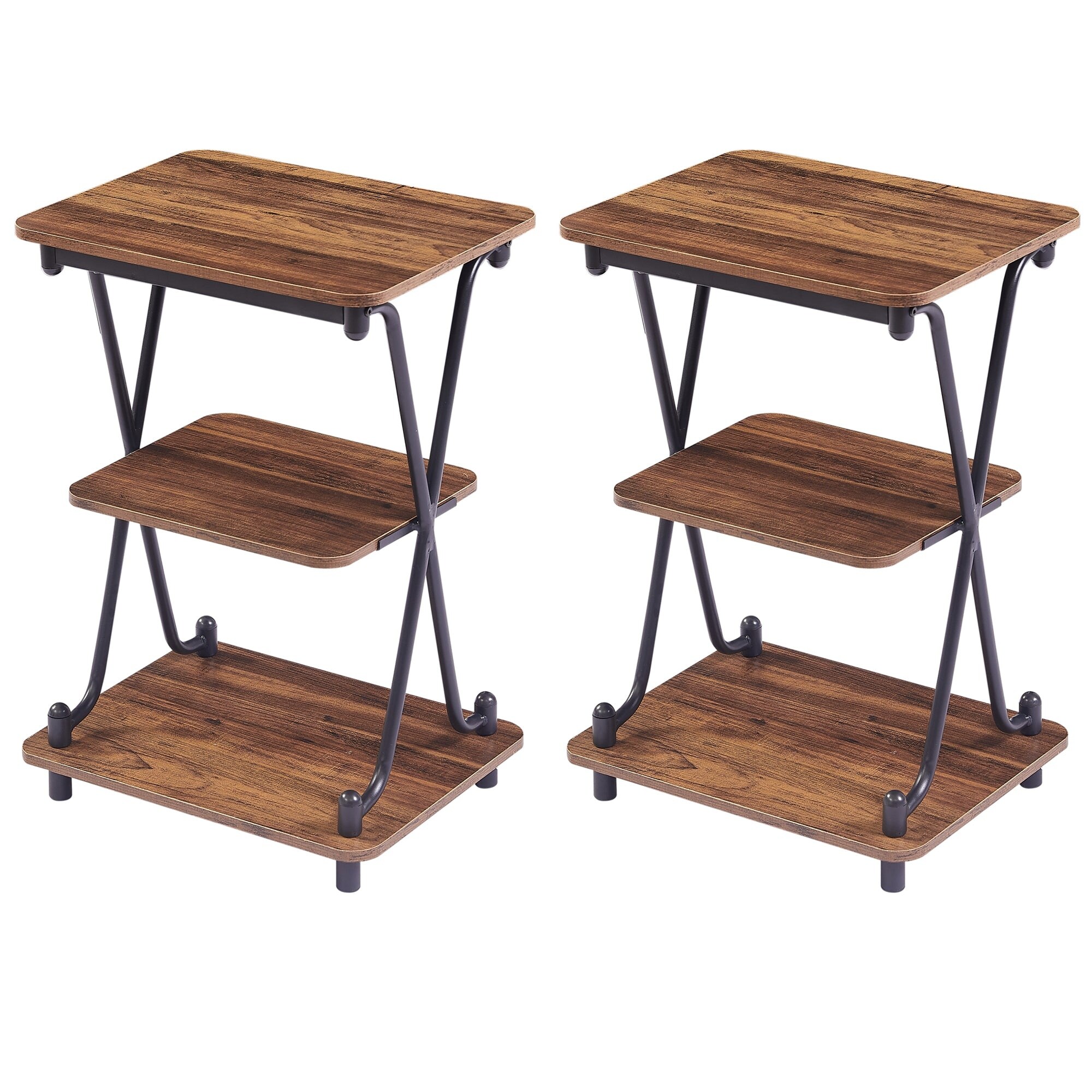 Set of 2 Modern 3-Tier Bedside/End Table with Storage Shelf, X-Shaped Design Nightstand and Sofa Side End Table