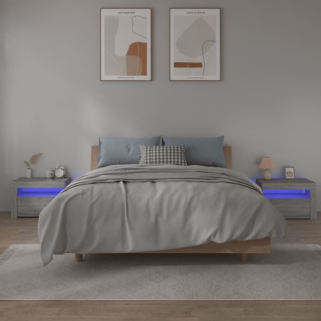 vidaXL 2x Bedside Cabinets with LEDs Nightstand Bed End Table Multi Colors