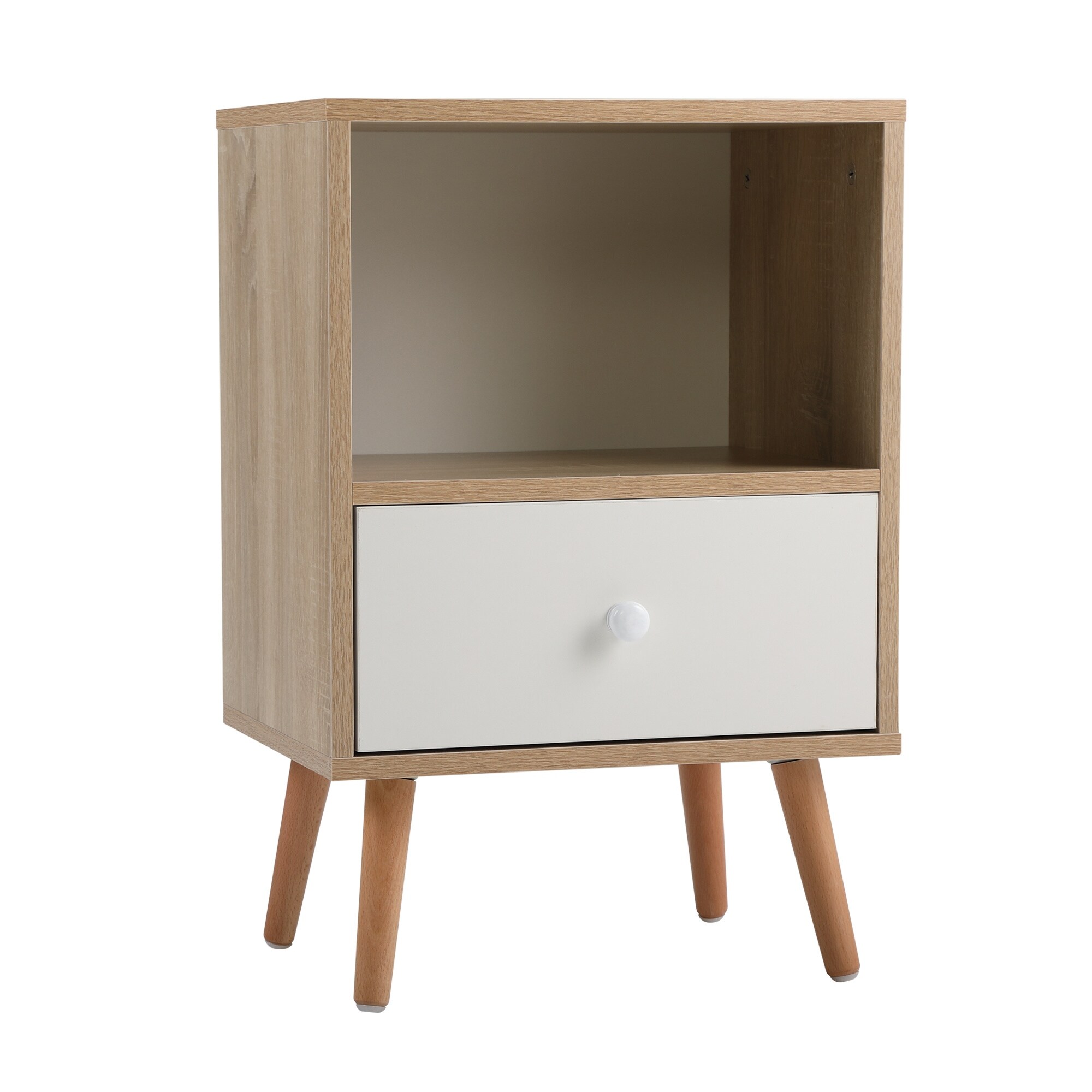 Mid-Century Wood Nightstand Bedside End Table with Drawer Shelf