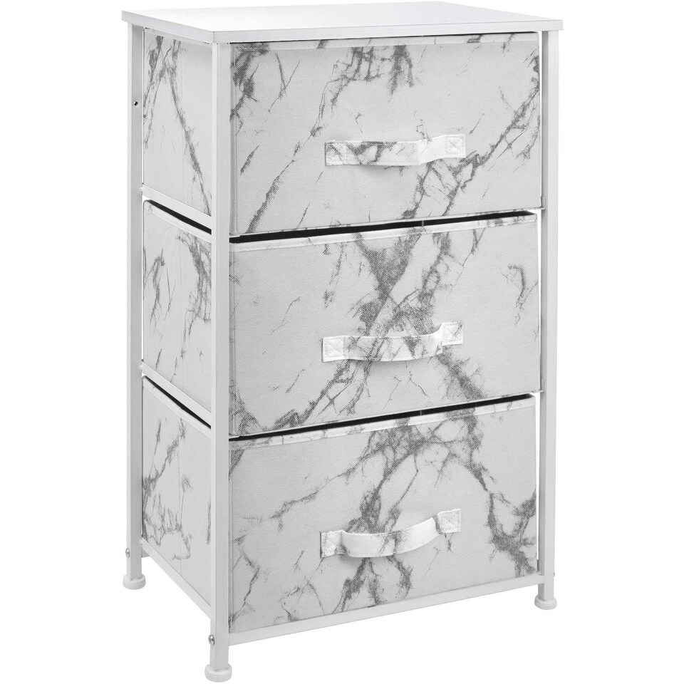 3 Drawer Bedside Nightstand End Table Bedroom Dresser - Marble Colors
