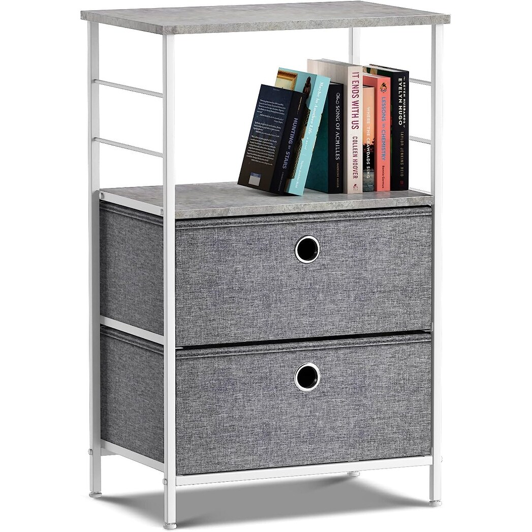 Nightstand 2-Drawer Shelf Storage - Bedside Furniture End Table Chest
