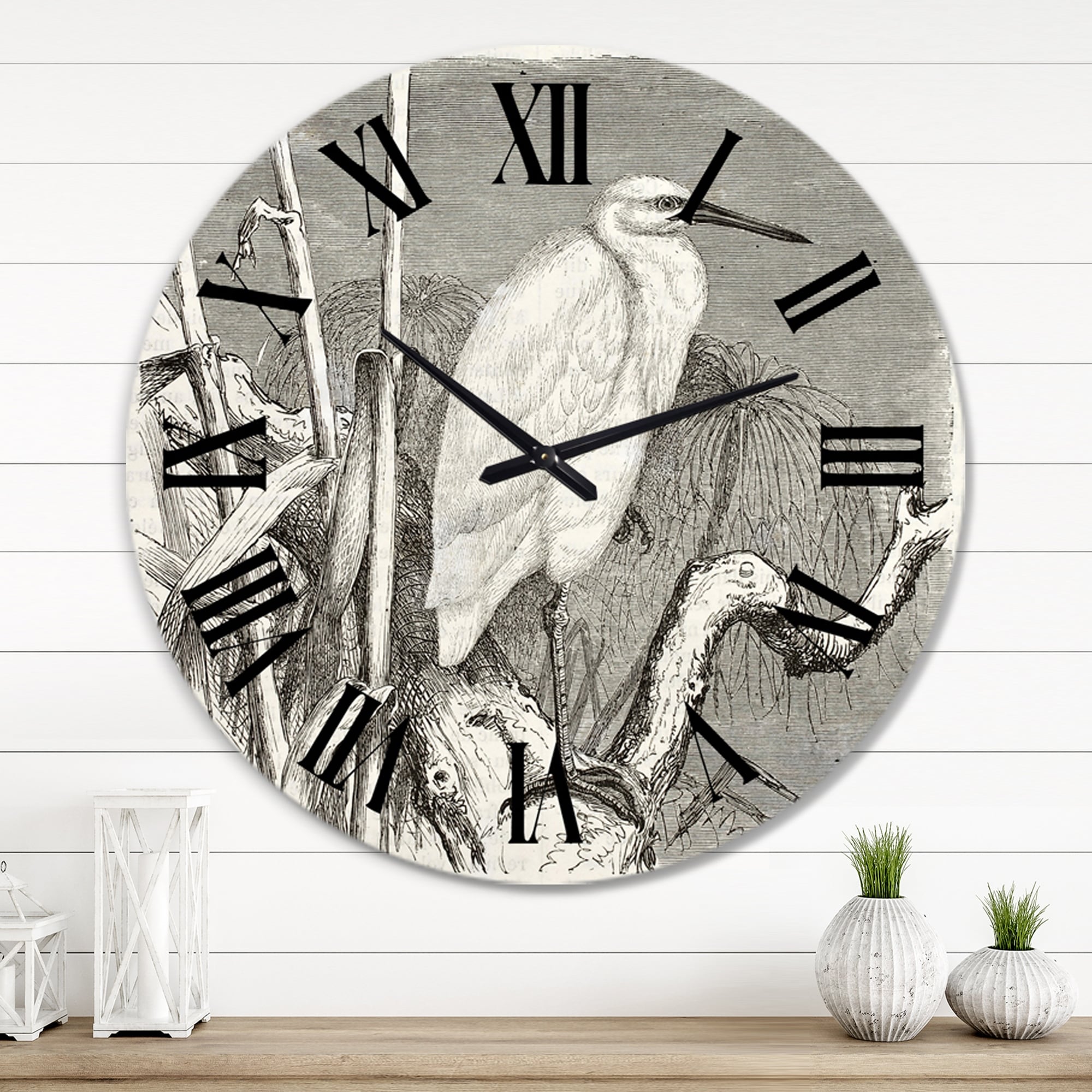 Designart 'Little Egret Bird' Farmhouse wall clock