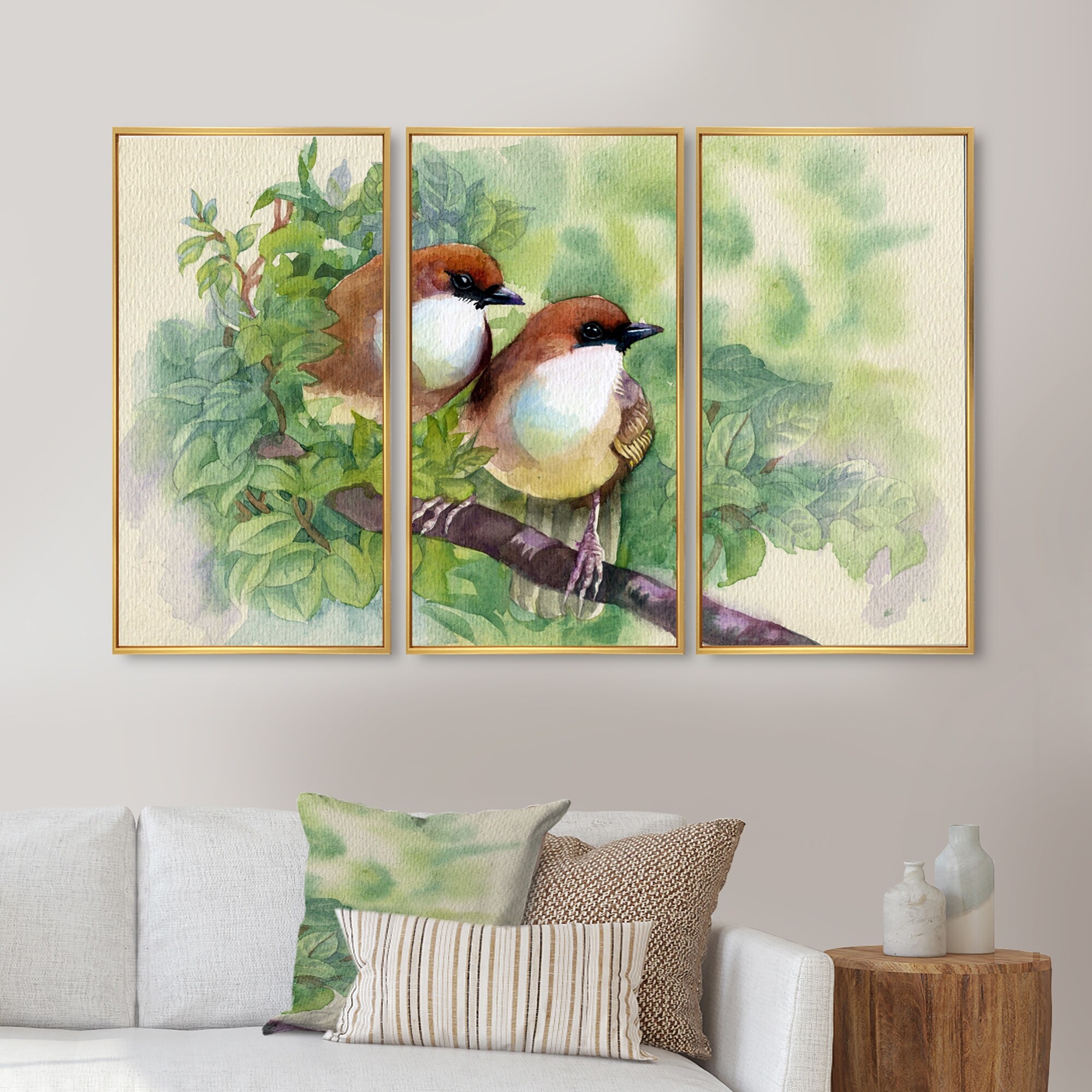 Designart "Birds Of Spring" Traditional Framed Art Set of 3 - 4 Colors of Frames