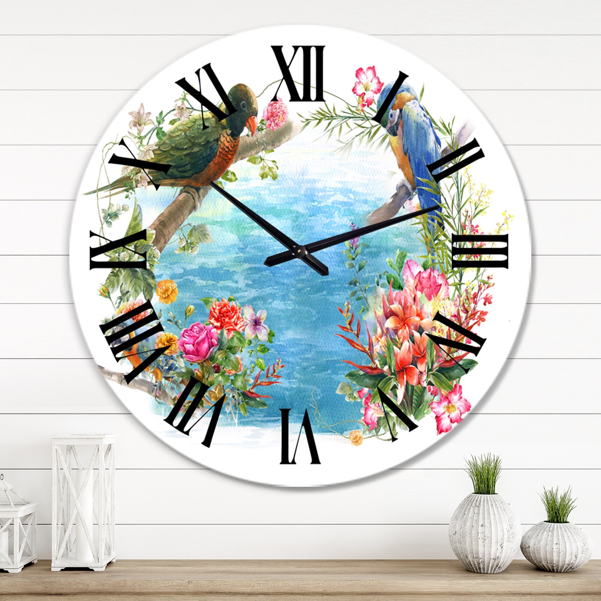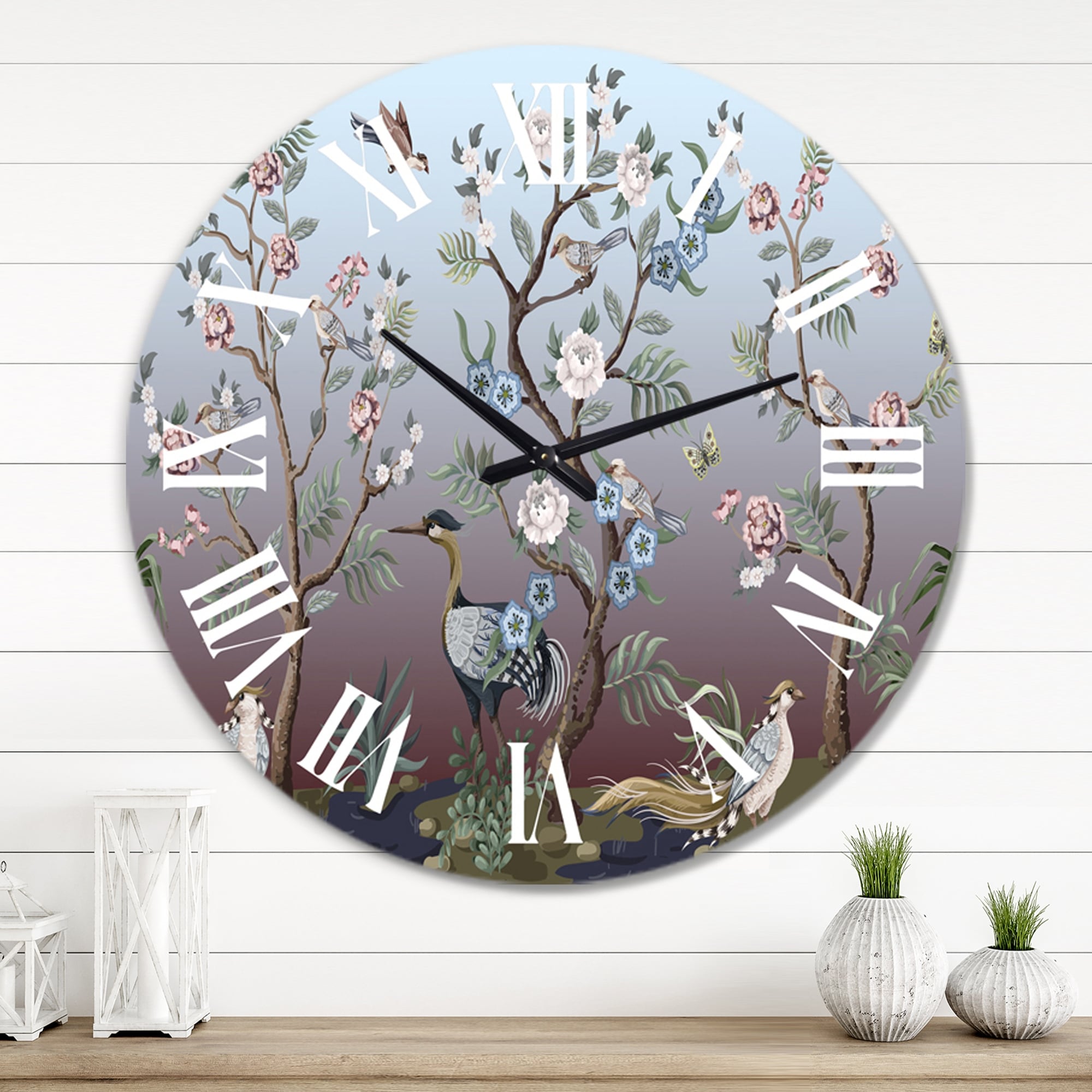 Designart 'Birds and Flowers By the Blue Waterside' Traditional wall clock
