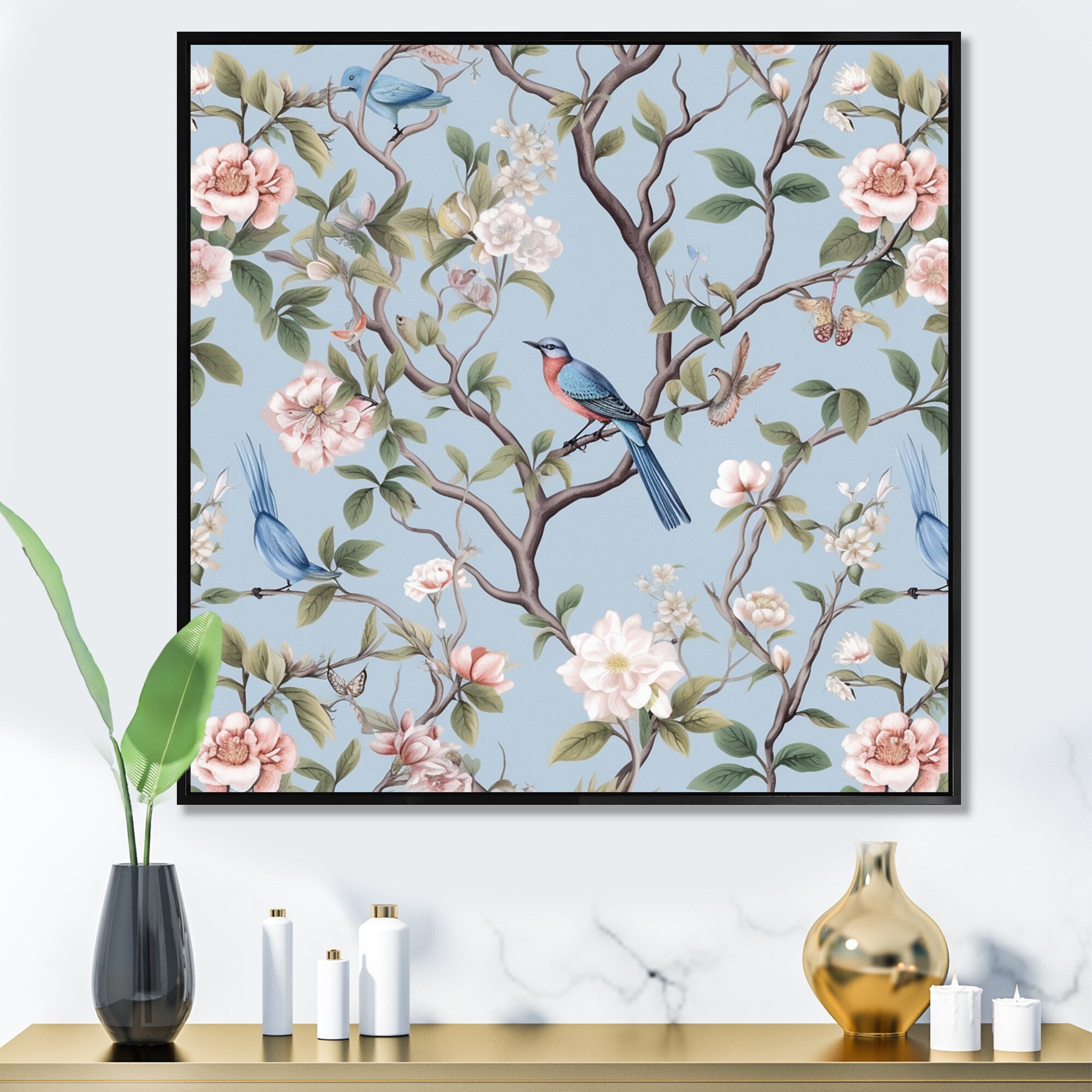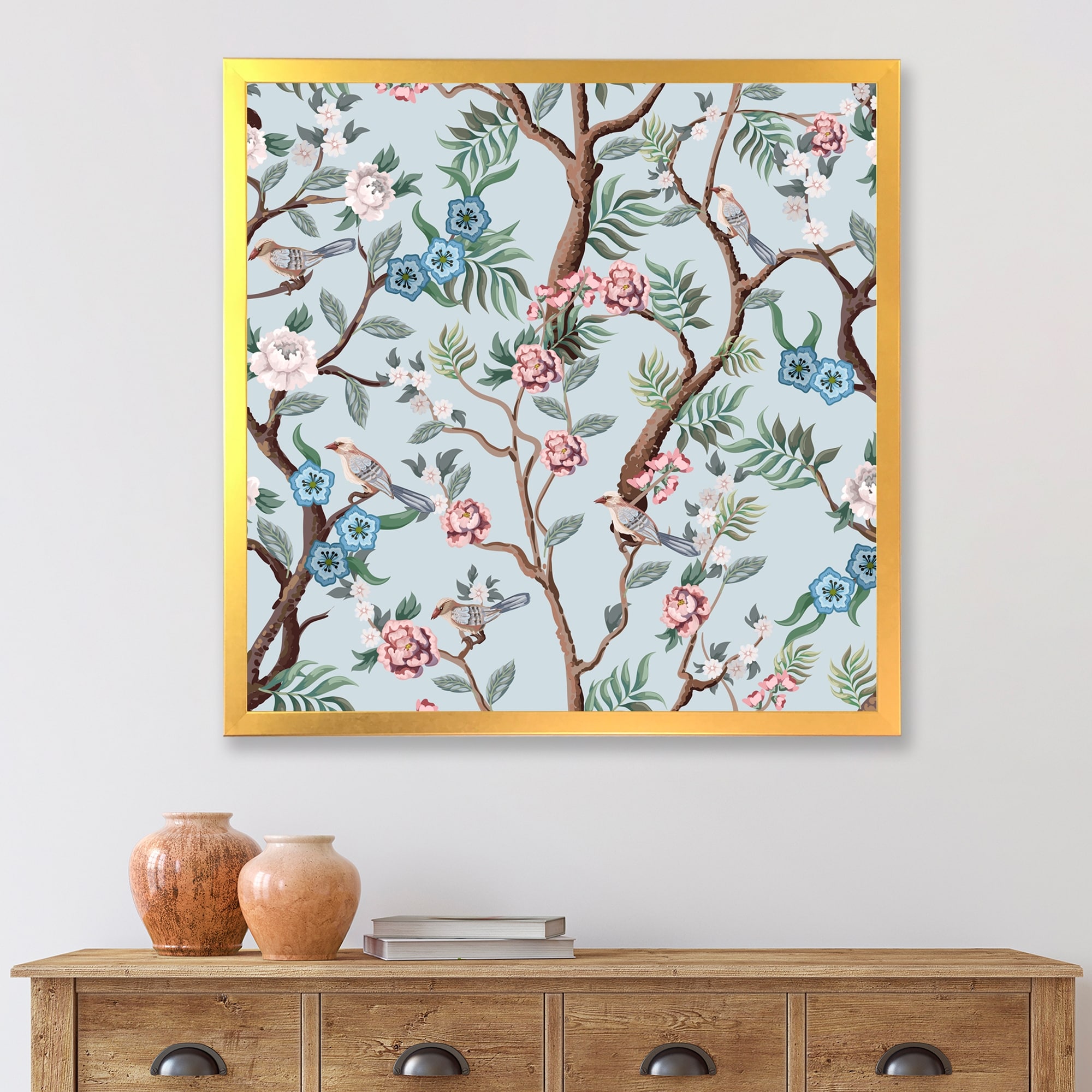 Designart "Chinoiserie With Birds and Peonies X" Traditional Framed Art Print