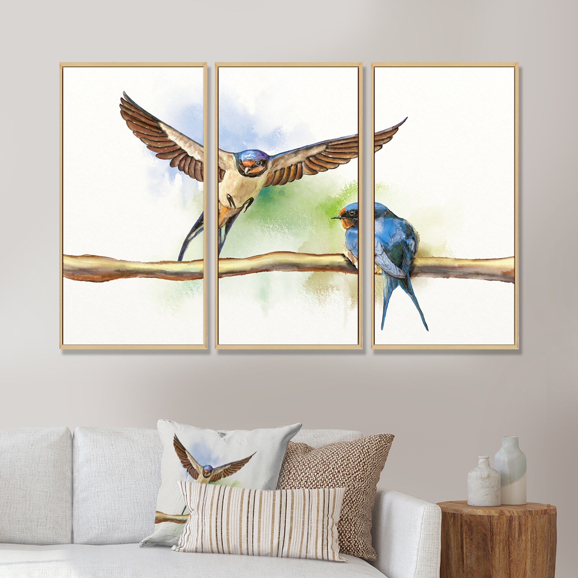 Designart "Two Barn Swallows Birds" Farmhouse Framed Art Prints Set of 3 - 4 Colors of Frames