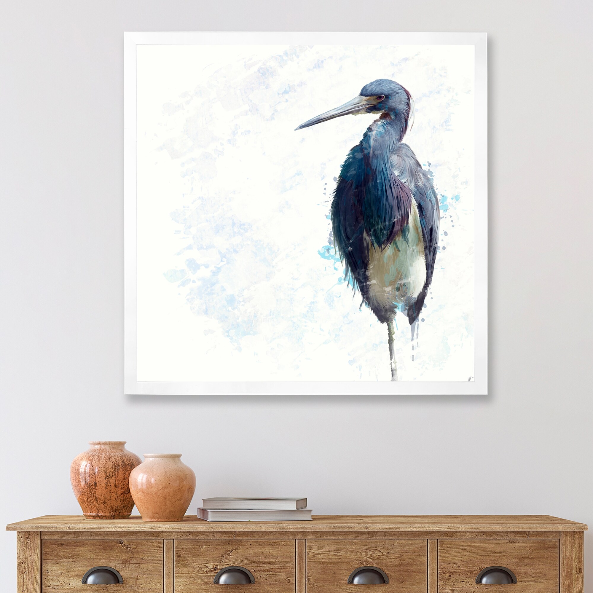 Designart "Tricolored Heron Bird" Farmhouse Framed Art Print