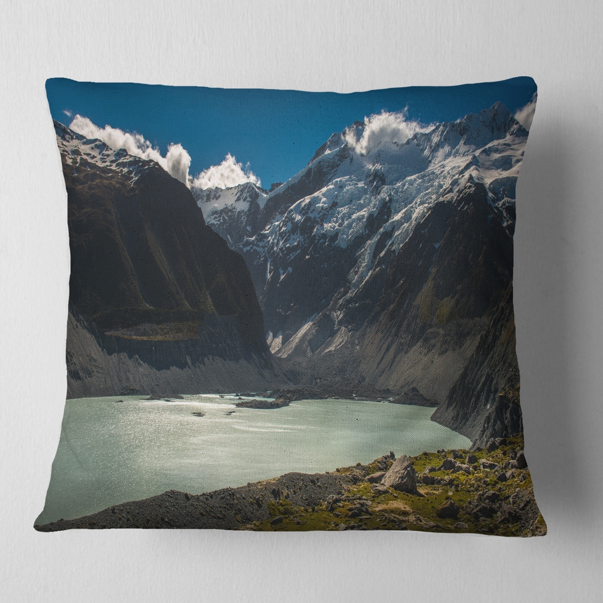 Designart 'Frosty Mountains Over Blue Lake' Landscape Printed Throw Pillow