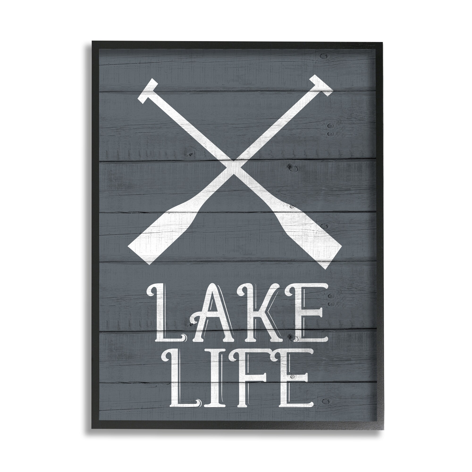 Stupell Industries Nautical Blue Lake Life Phrase Rustic Boat Oars Framed Wall Art