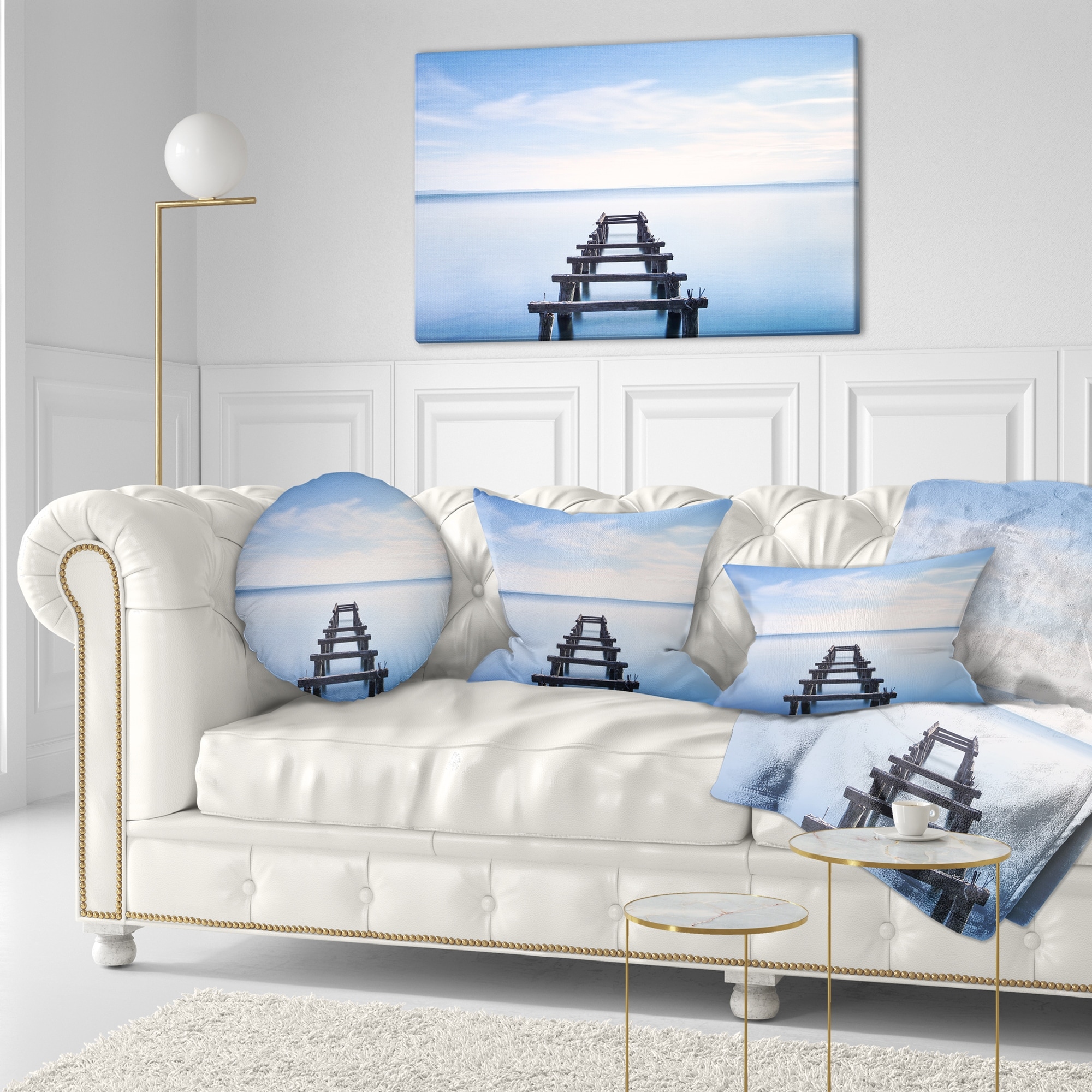 Designart 'Jetty Remains in Blue Lake' Seascape Wall Tapestry