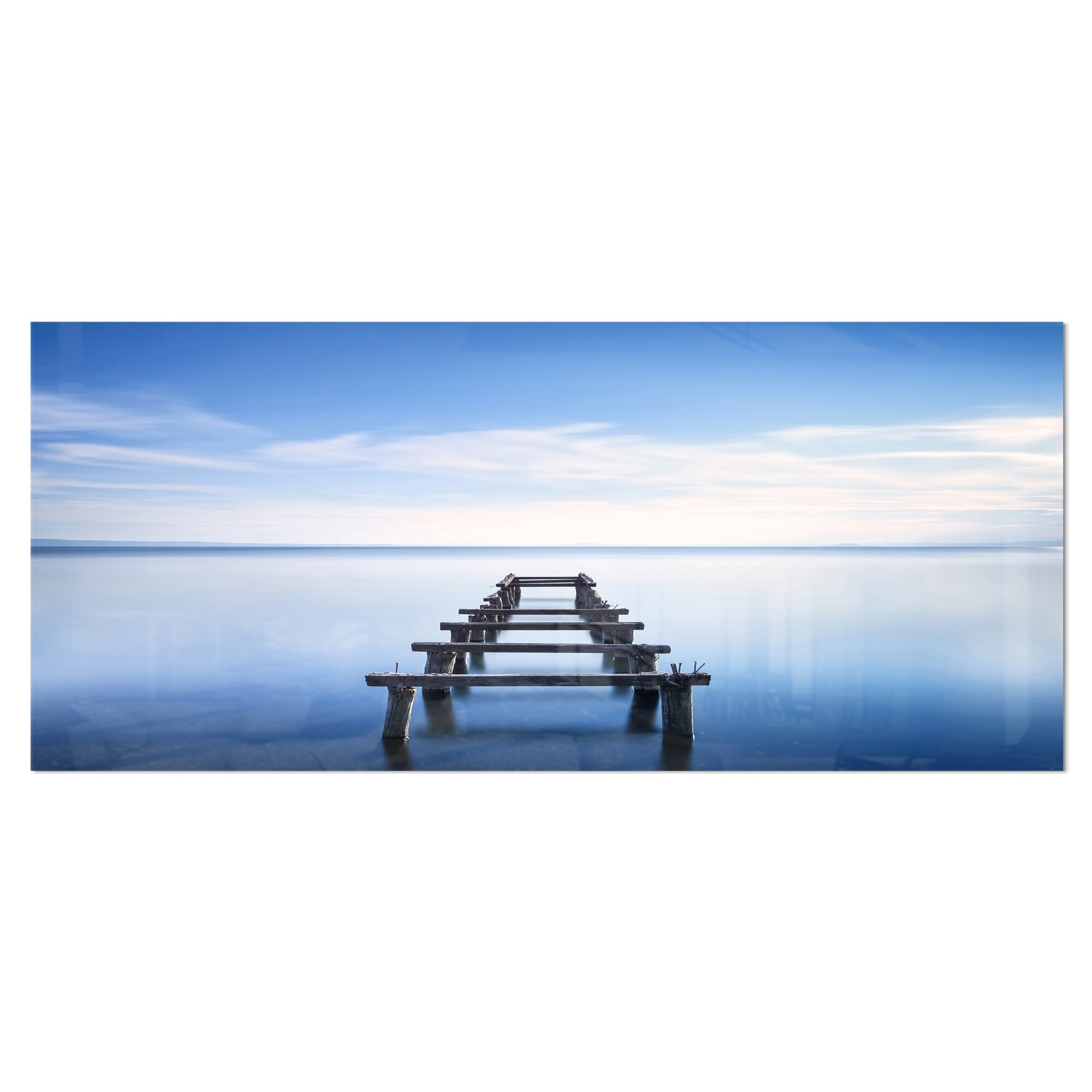 Designart 'Jetty Remains in Blue Lake' Seascape Photo Metal Wall Art