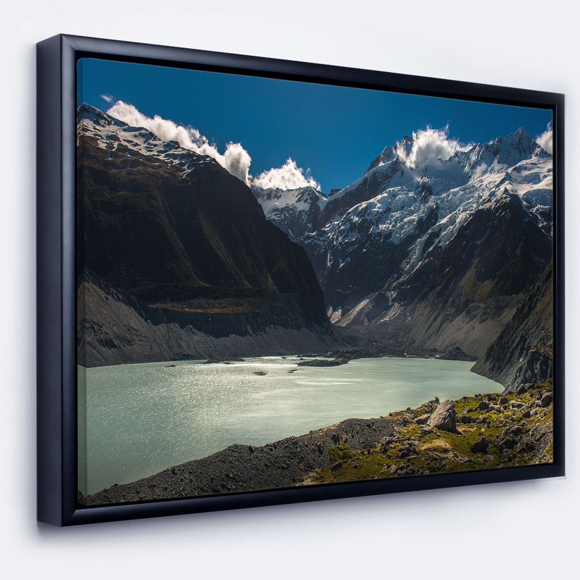 Designart "Frosty Mountains Over Blue Lake" Landscape Framed Canvas Art Print