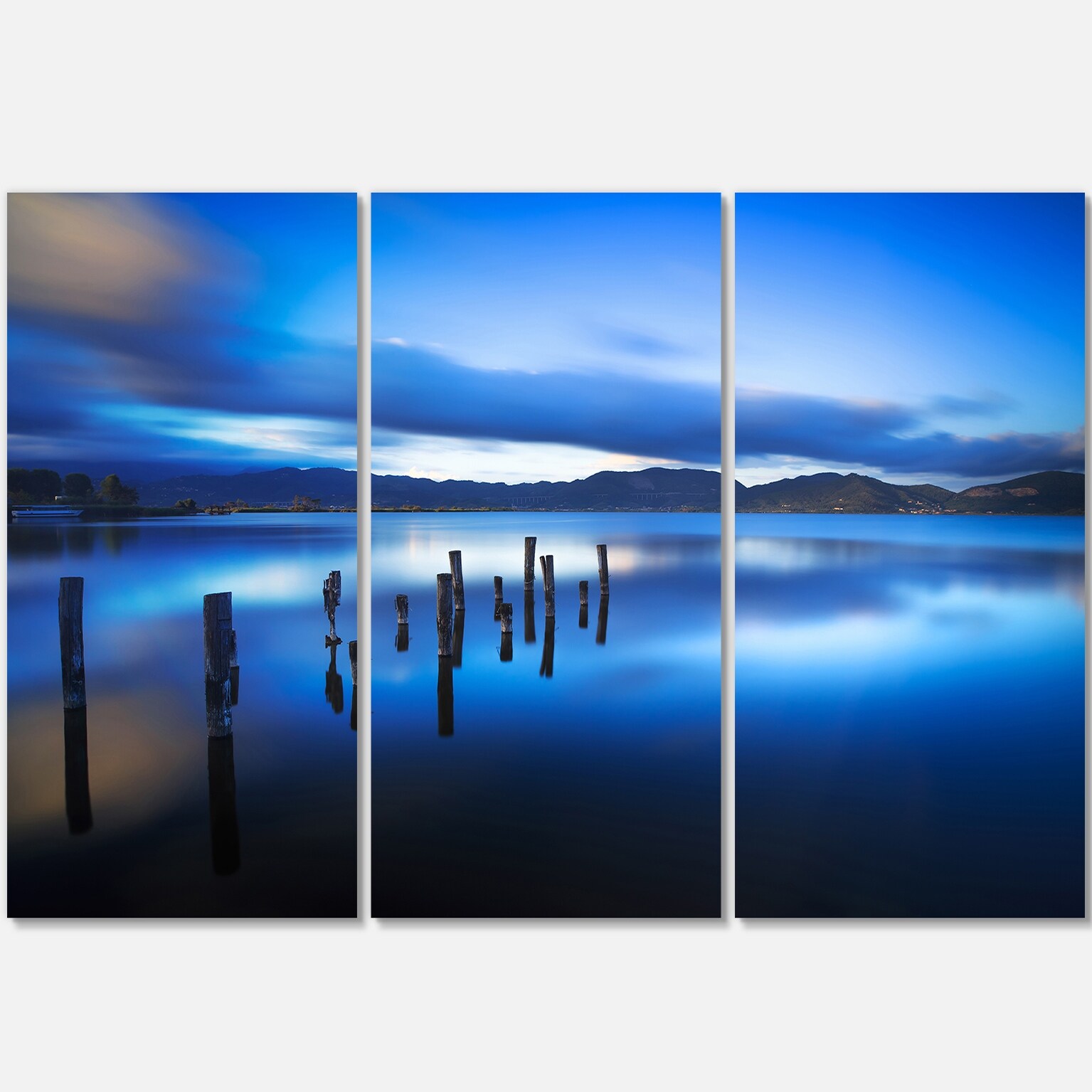 Designart "Jetty Remains in Blue Lake" Seascape Canvas Art Print