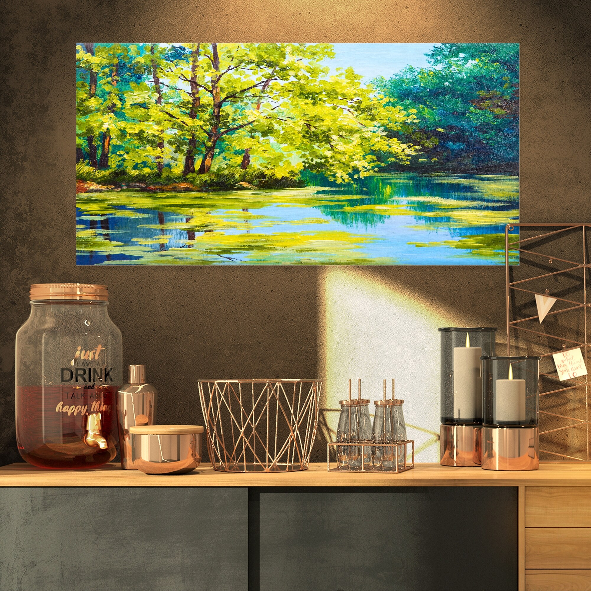 Designart "Blue Lake Under Green Tree" Landscape Canvas Print