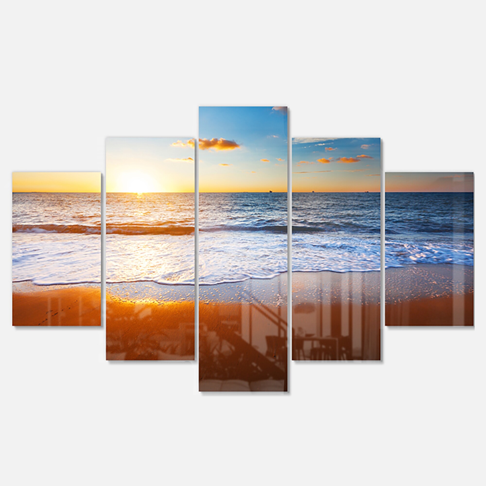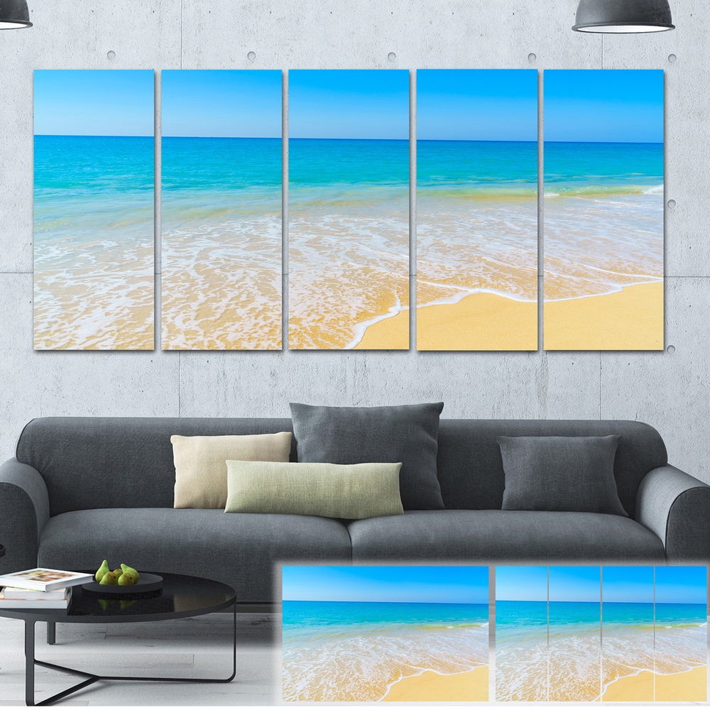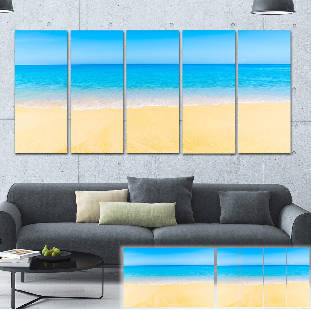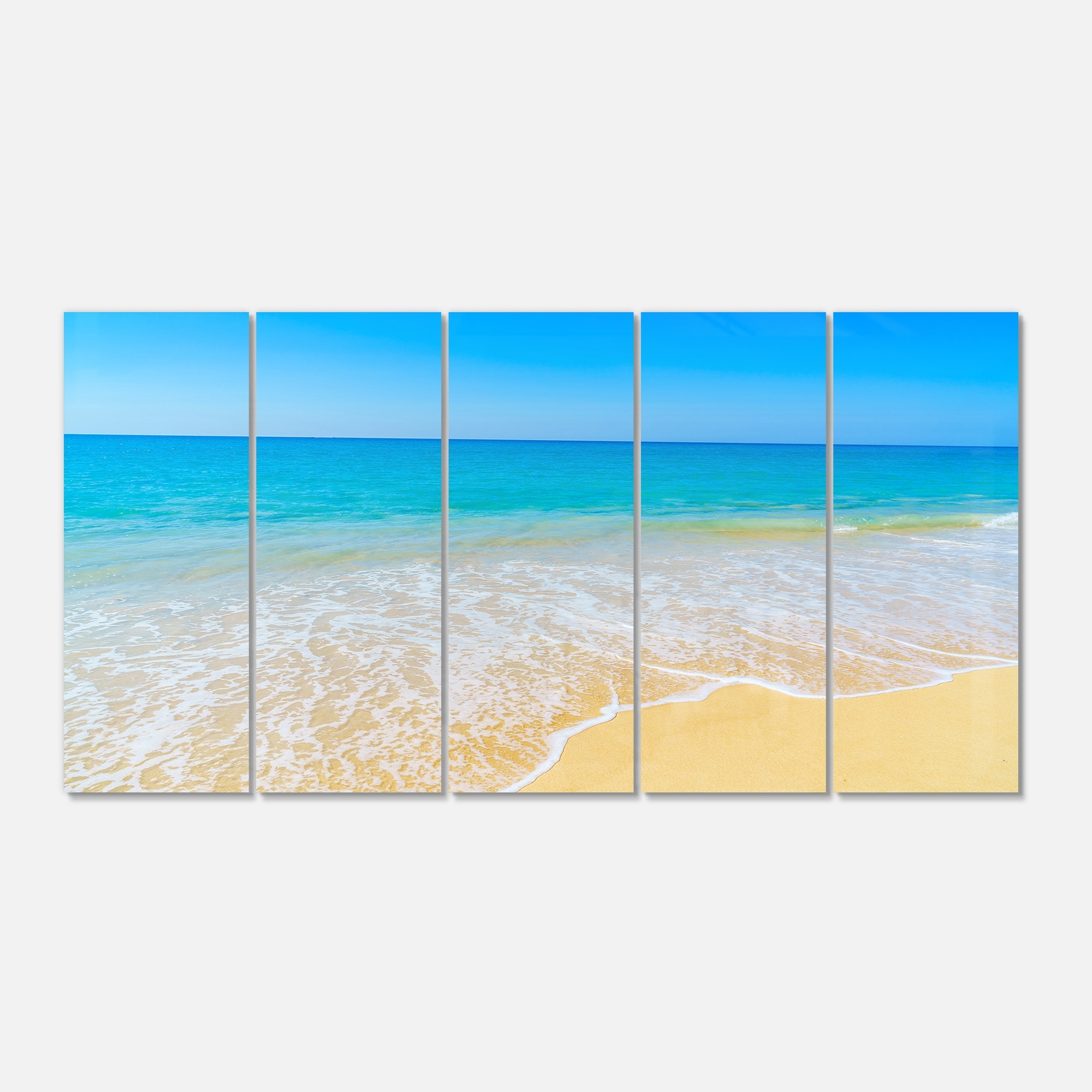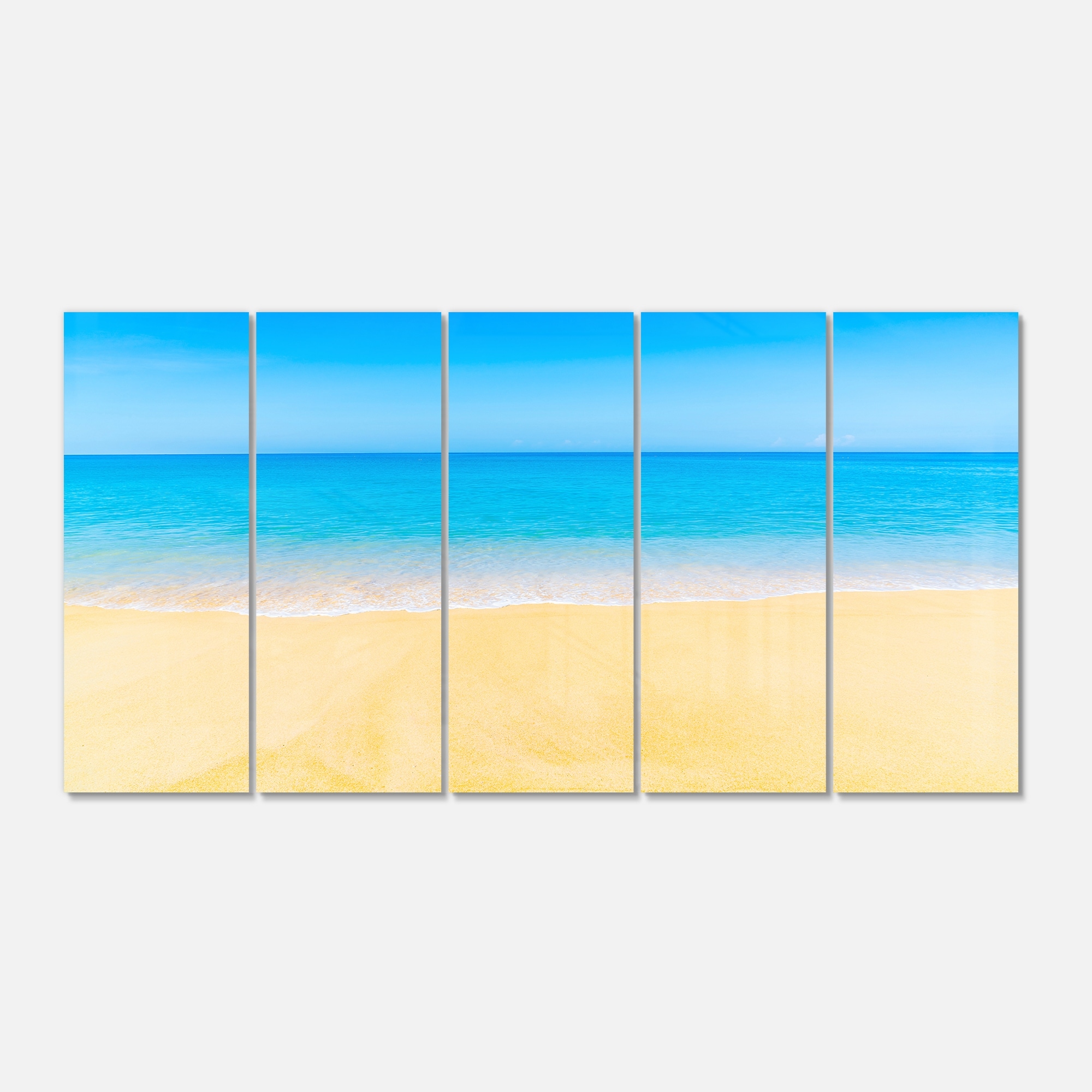 Designart 'Blue Sea and Sky with Sandy Beach' Modern Seashore Metal Wall Art