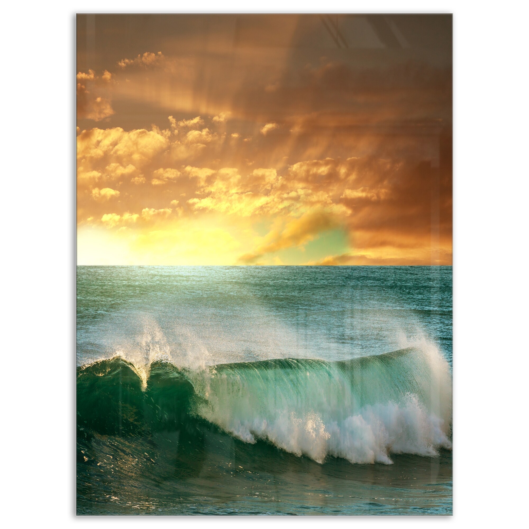 Stormy White Wave in Blue Sea - Modern Beach Glossy Metal Wall Art