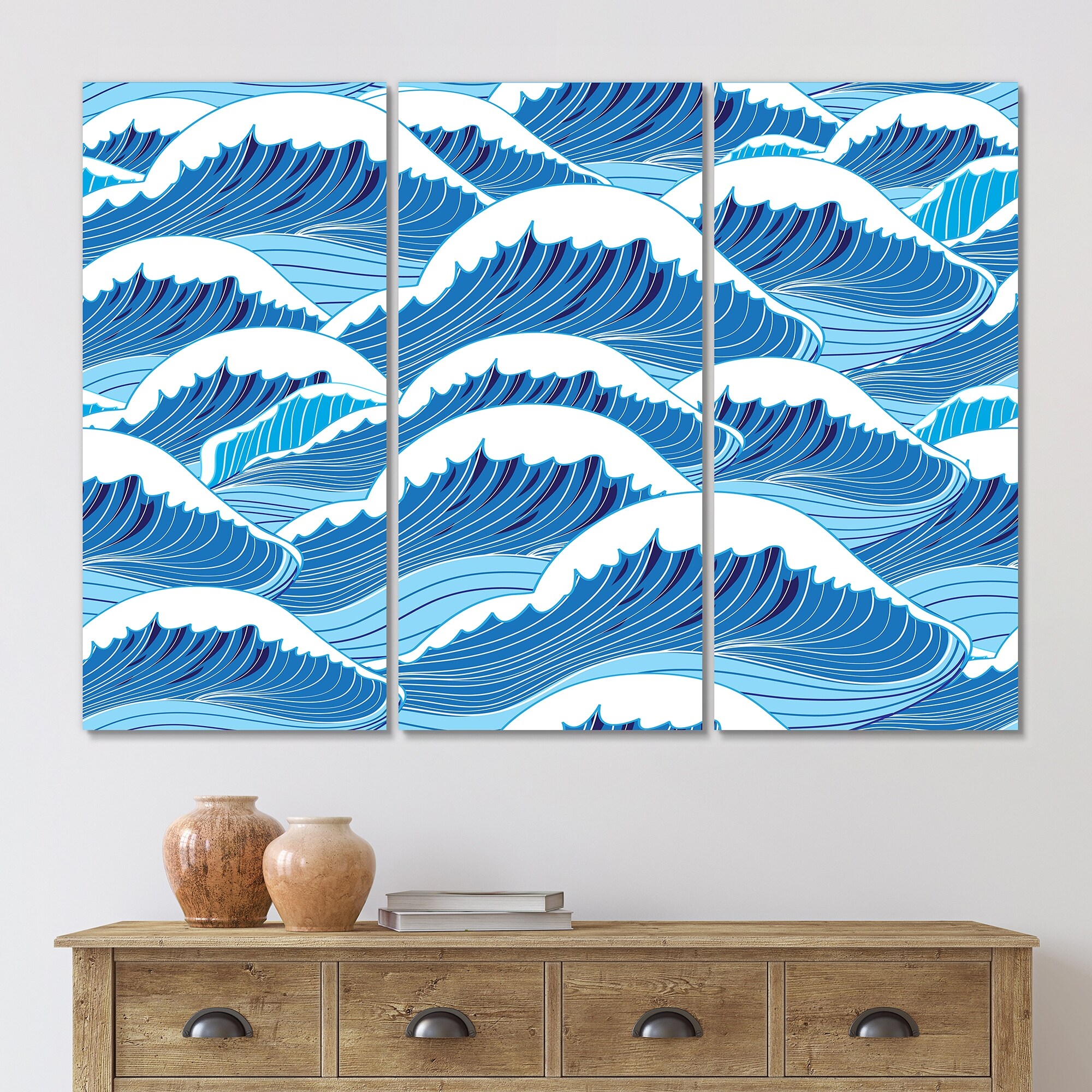 Designart "Coast Blue Sea Waves Watercolour" Nautical & Coastal Framed Art Set of 3 - 4 Colors of Frames