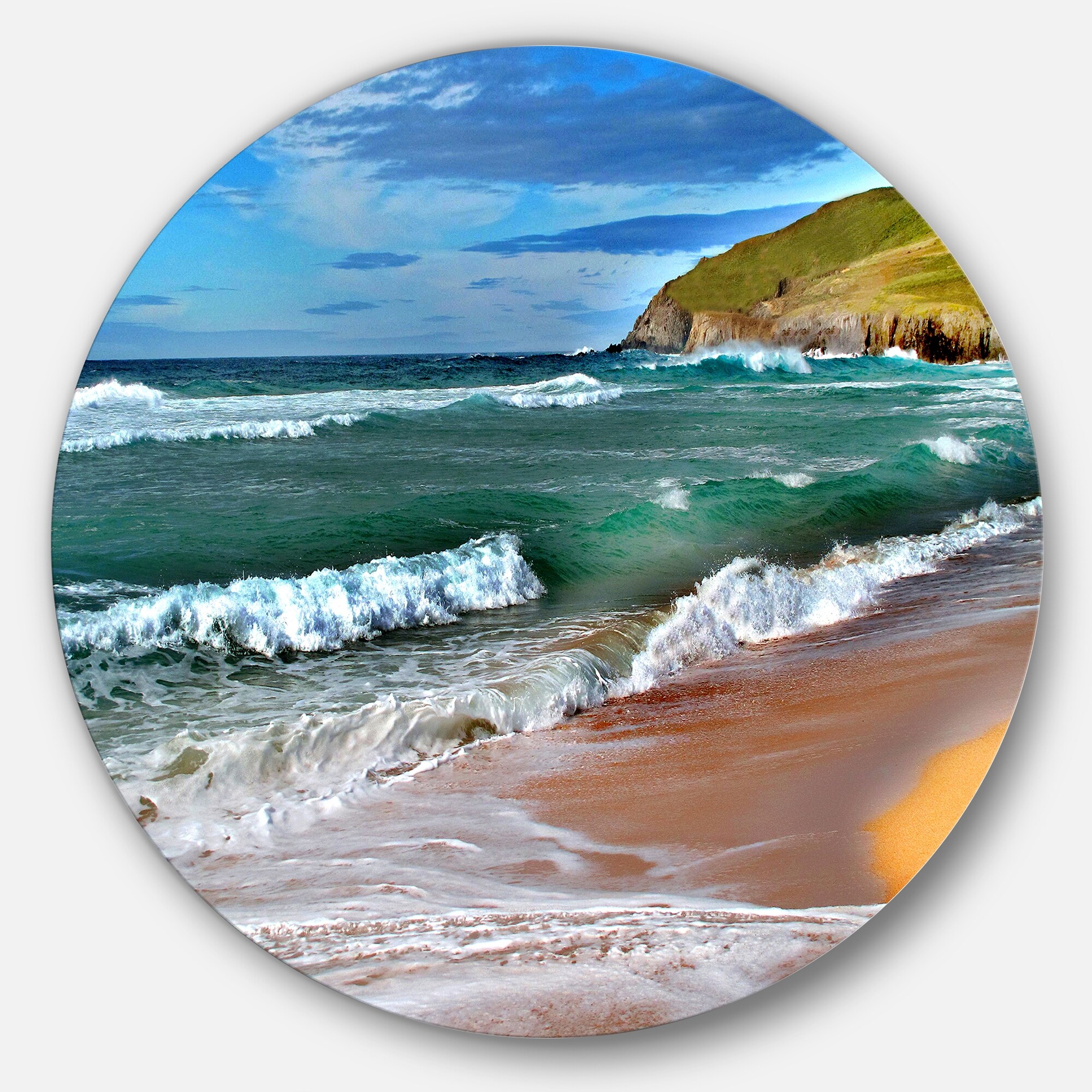 Designart 'Blue Sea with Warm Waves' Seascape Disc Metal Artwork