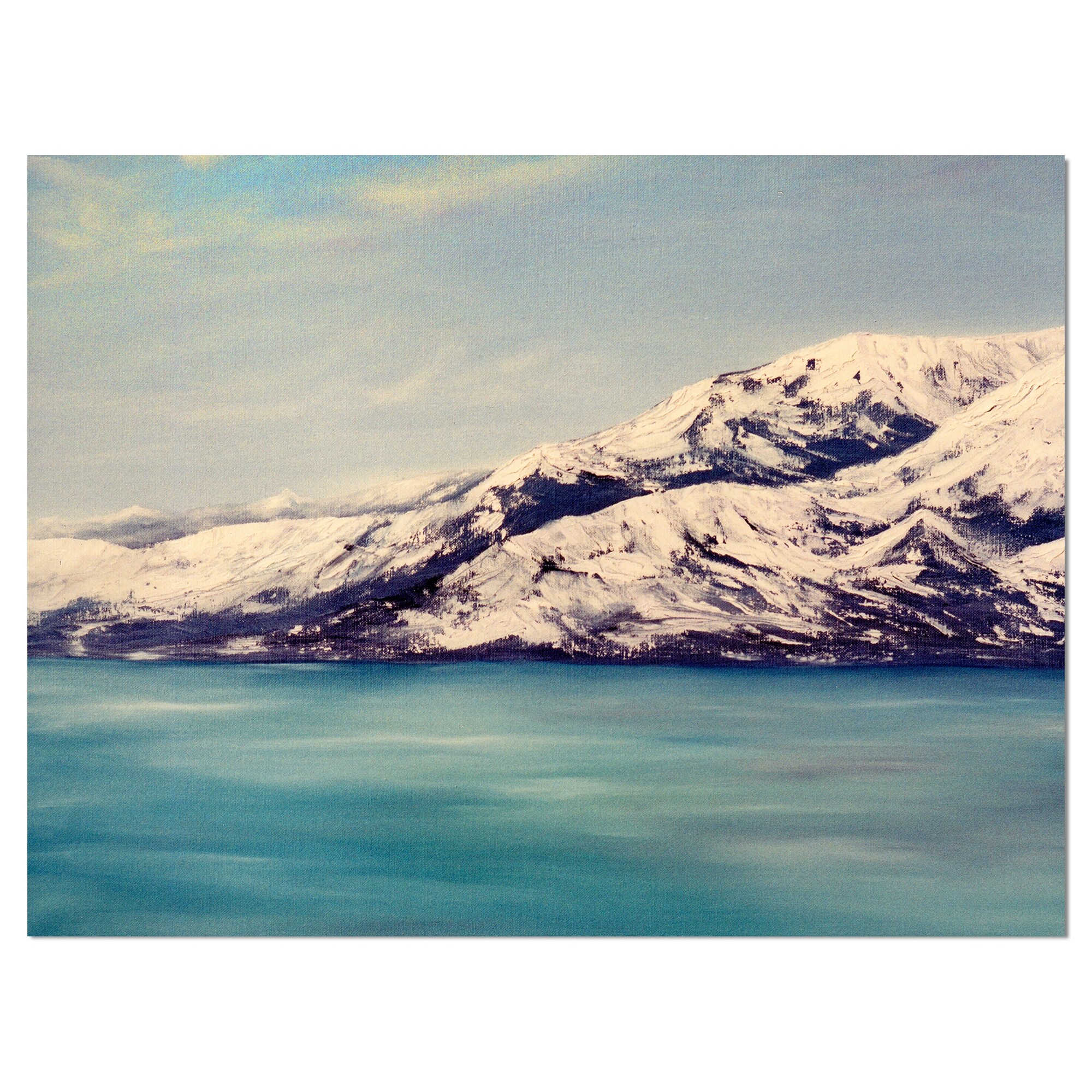 Designart "Blue Sea under Frozen Hills" Landscapes Sea & Shore Photographic on wrapped Canvas