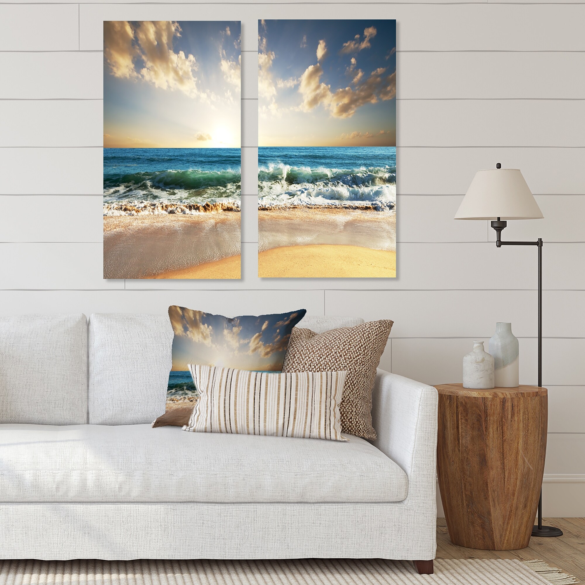 Designart "Cloudy Sky and Vibrant Blue Sea" Seascape Canvas Wall Art Print 2 Piece Set