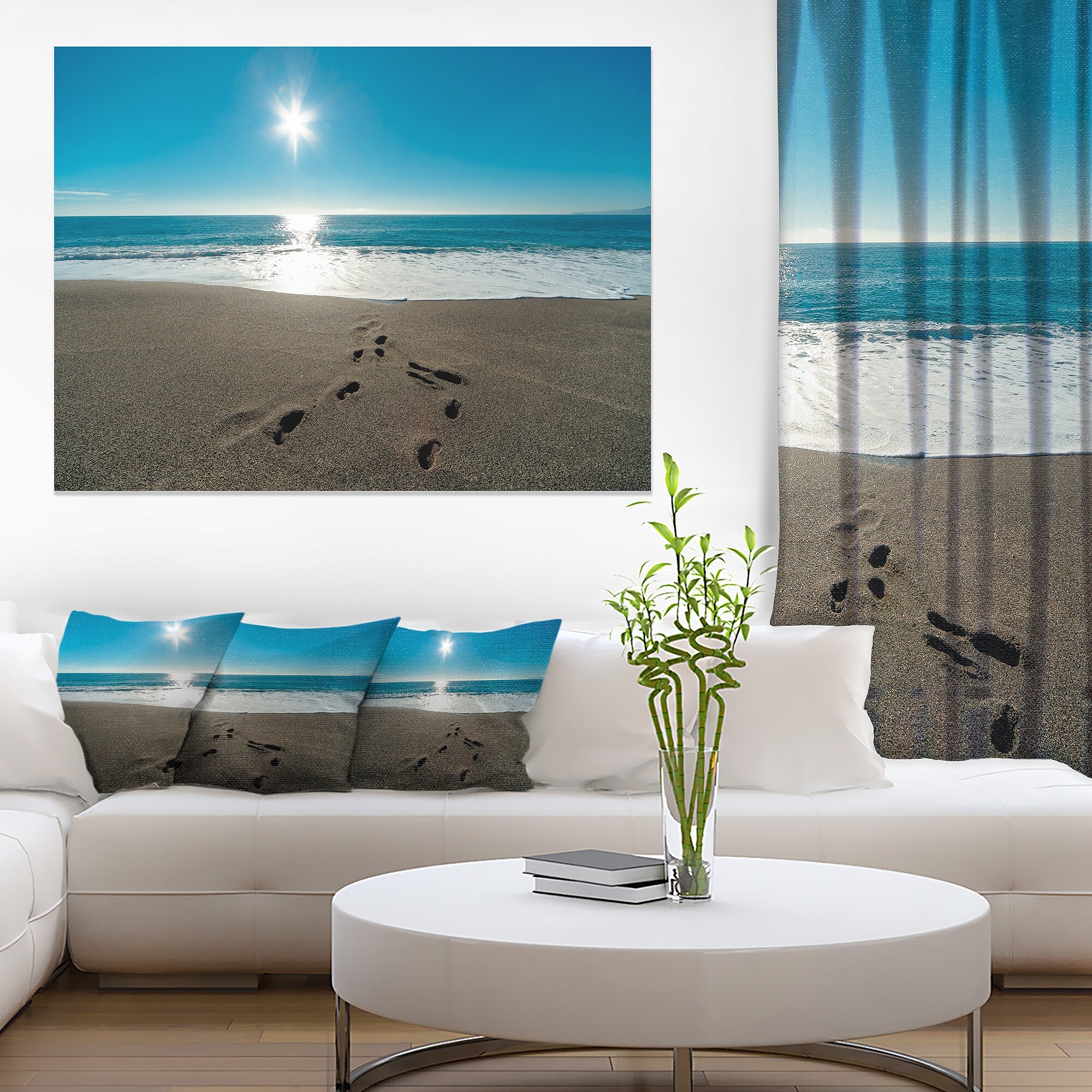 Blue Sea and Footprints in Sand - Large Seascape Art Canvas Print