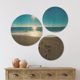 Designart 'Blue Sea and Footprints in Sand' Seascape Wood Wall Art Set of 3 Circles