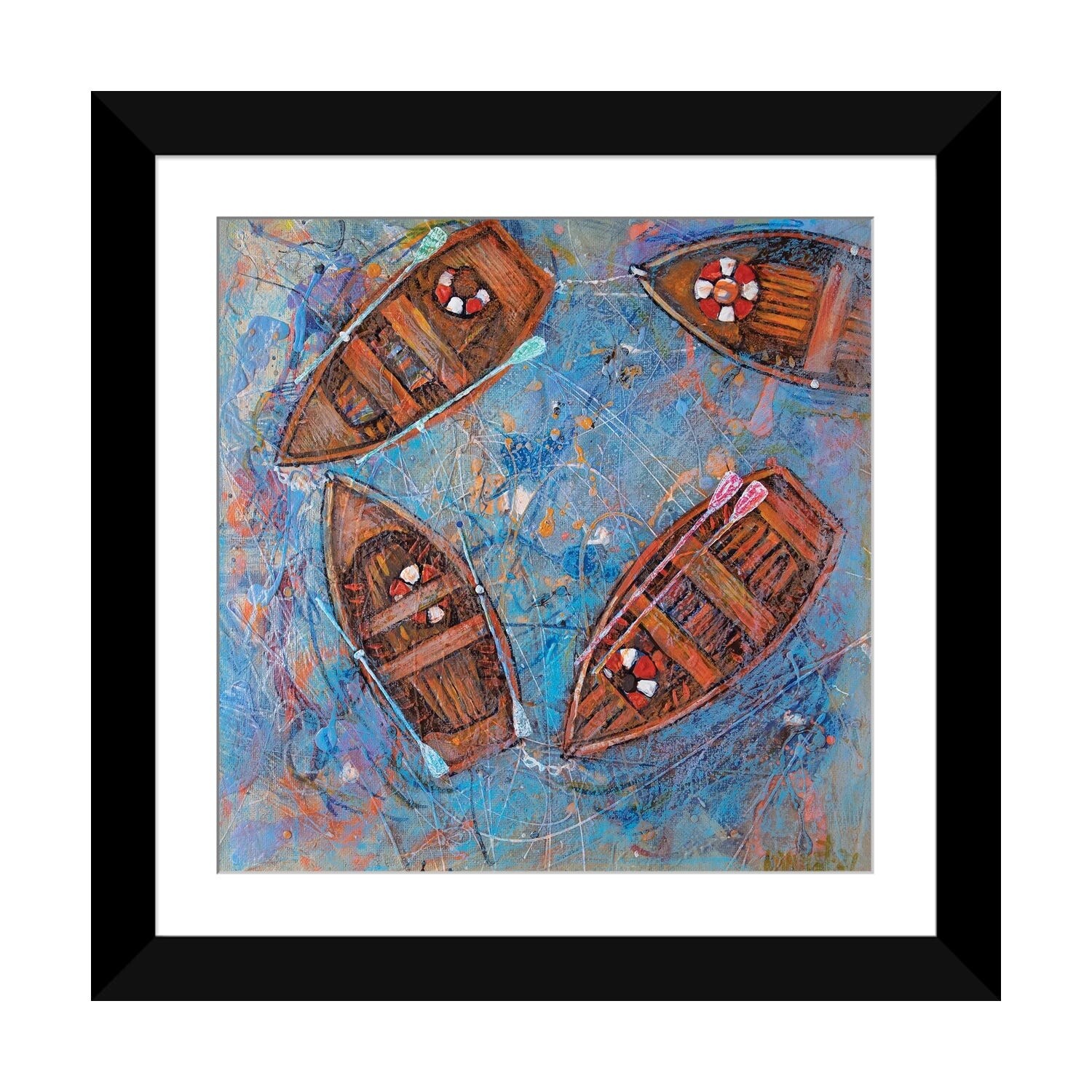 "Boat on the water" Black Float Frame Canvas Art