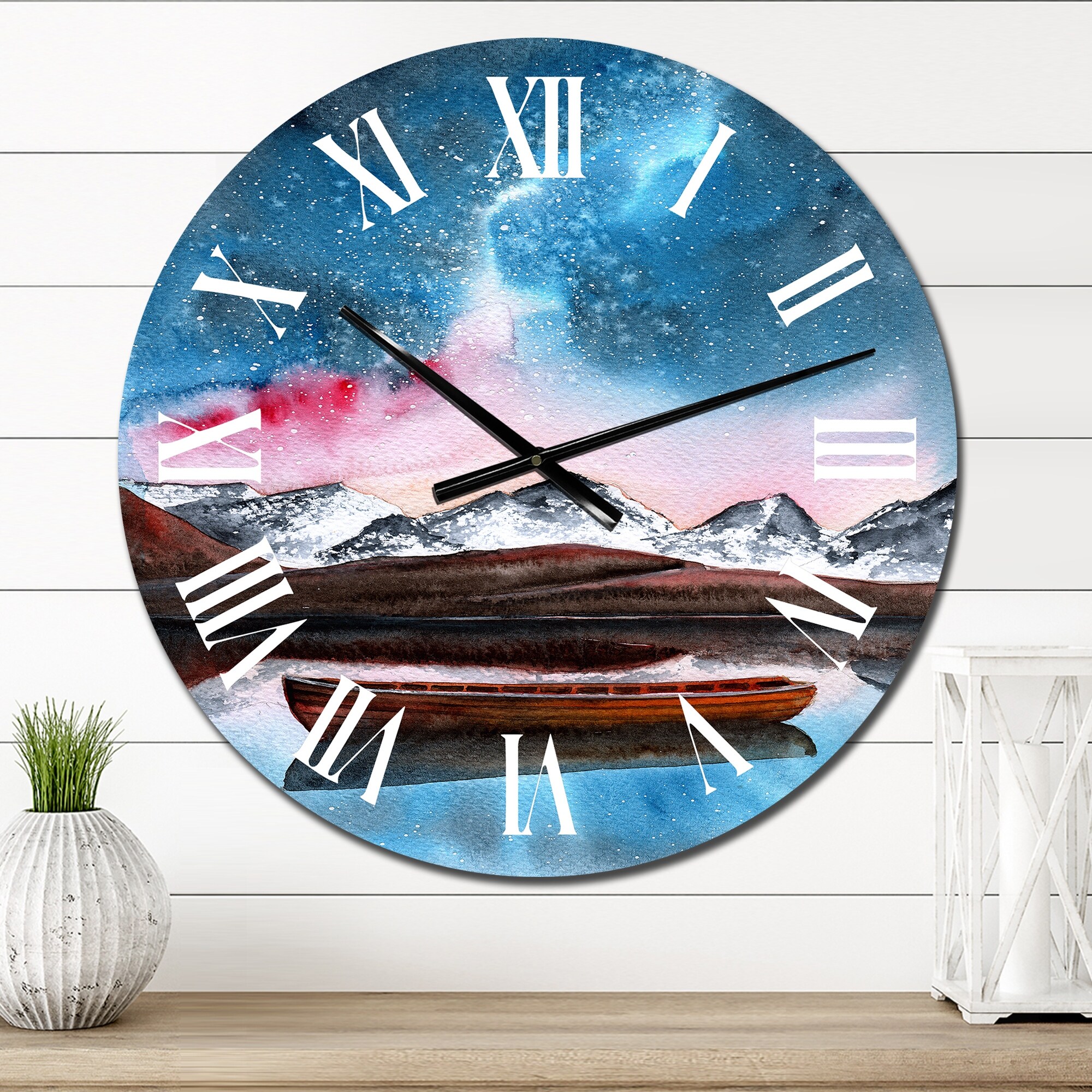 Designart 'Landscape With A Boat Reflecting in Mountain Lake' Traditional wall clock