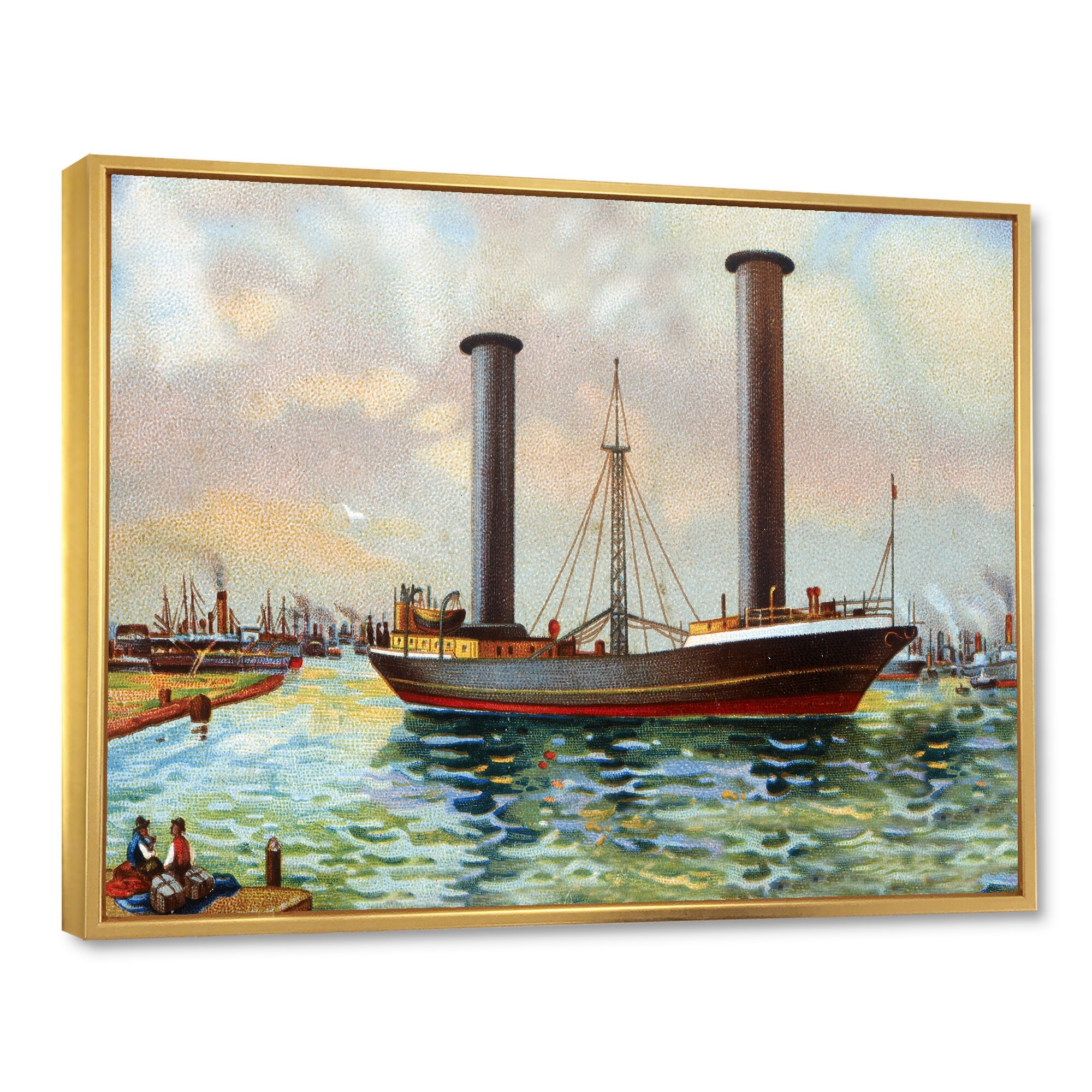 Designart "Ancient Boat Leaving the Harbor" Nautical & Coastal Framed Canvas Wall Art Print