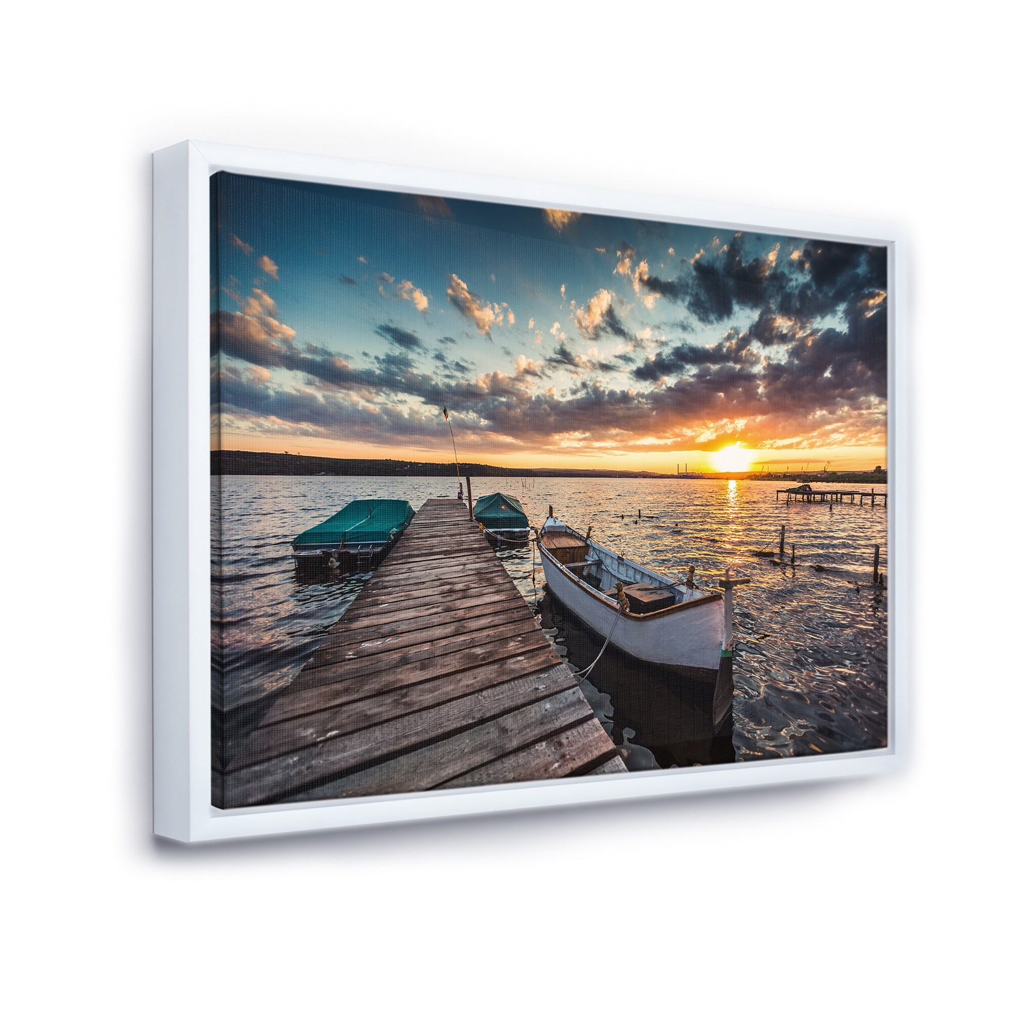 Designart "Boats and Jetty under Dramatic Sky" Modern Framed Canvas Art Print