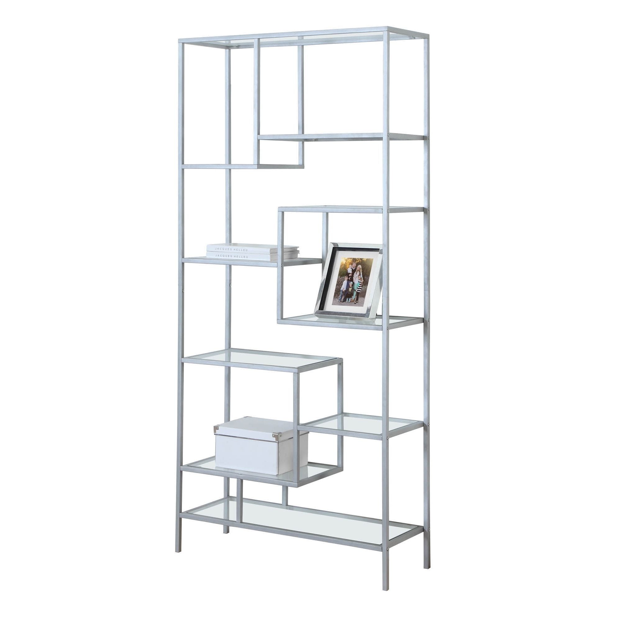 Offex 72"H Contemporary Silver Metal Tempered Glass Bookcase - Clear - 32"x 12"x 72"