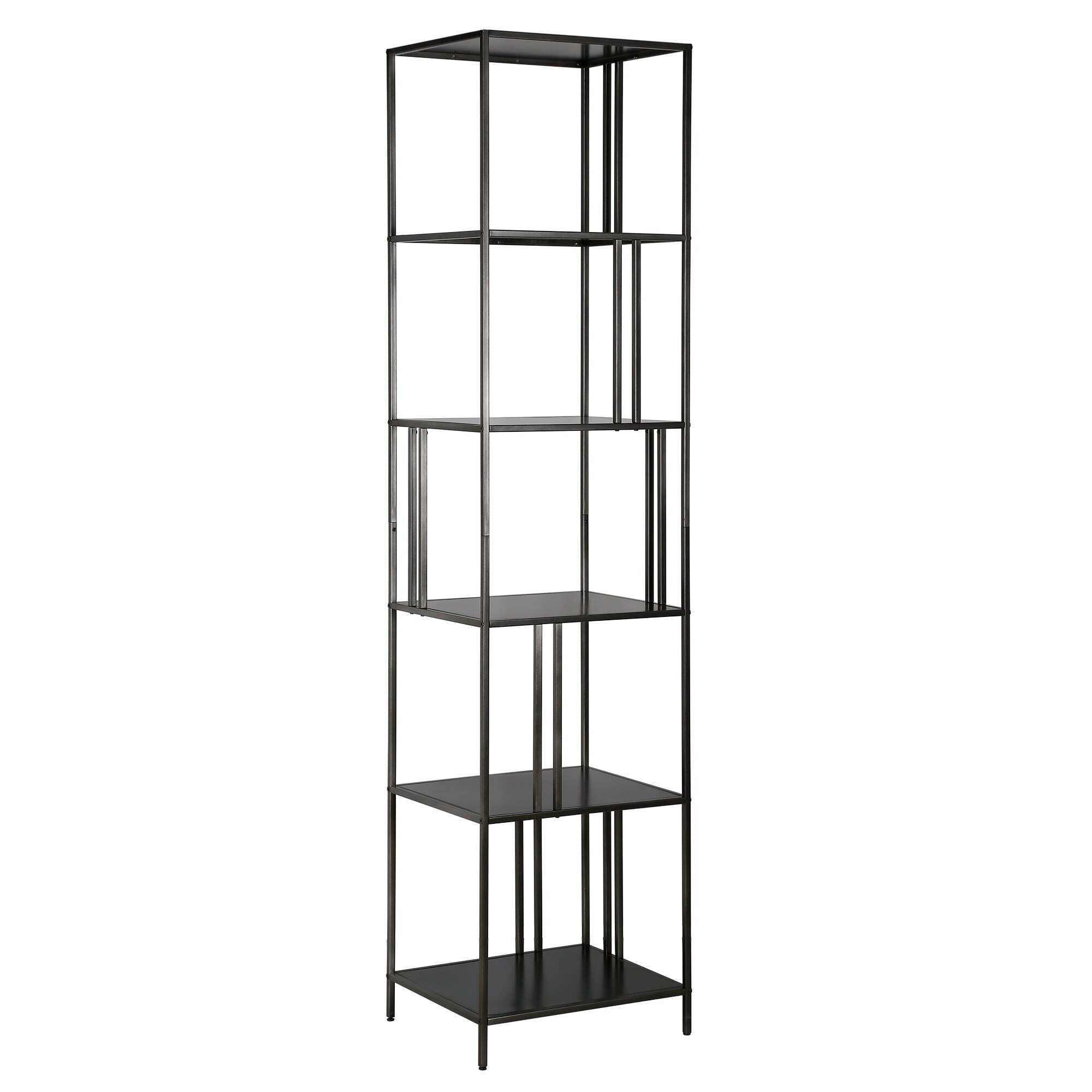 Industrial Metal Bookcase with Glass Shelves, Black Nickel