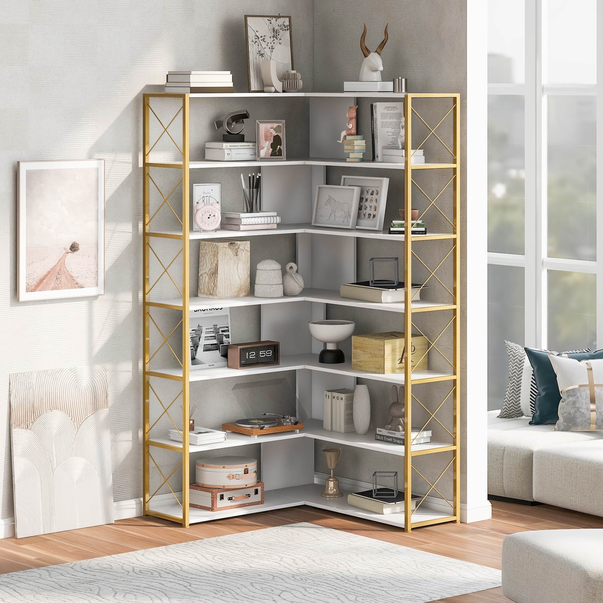7-Tier L-Shaped Corner Bookcase with Metal Frame