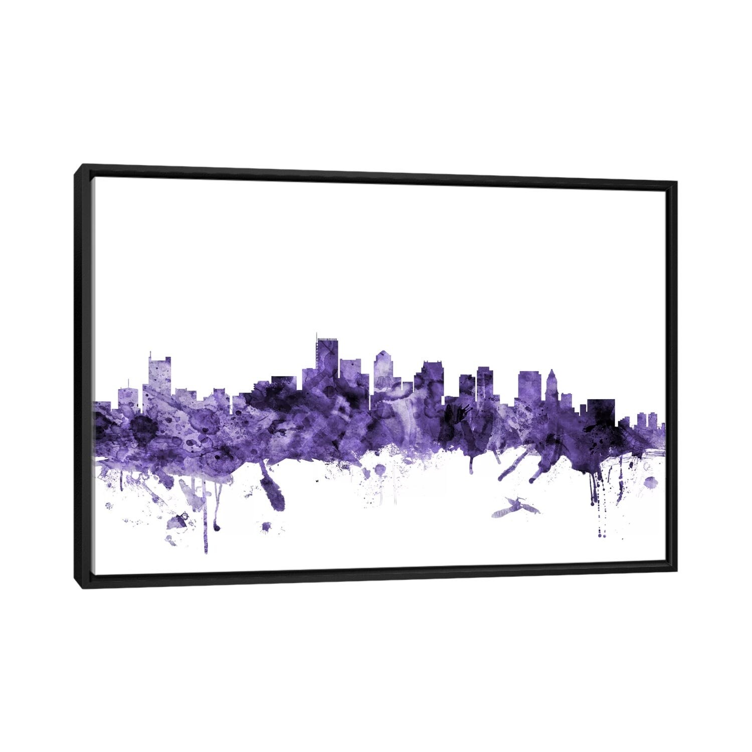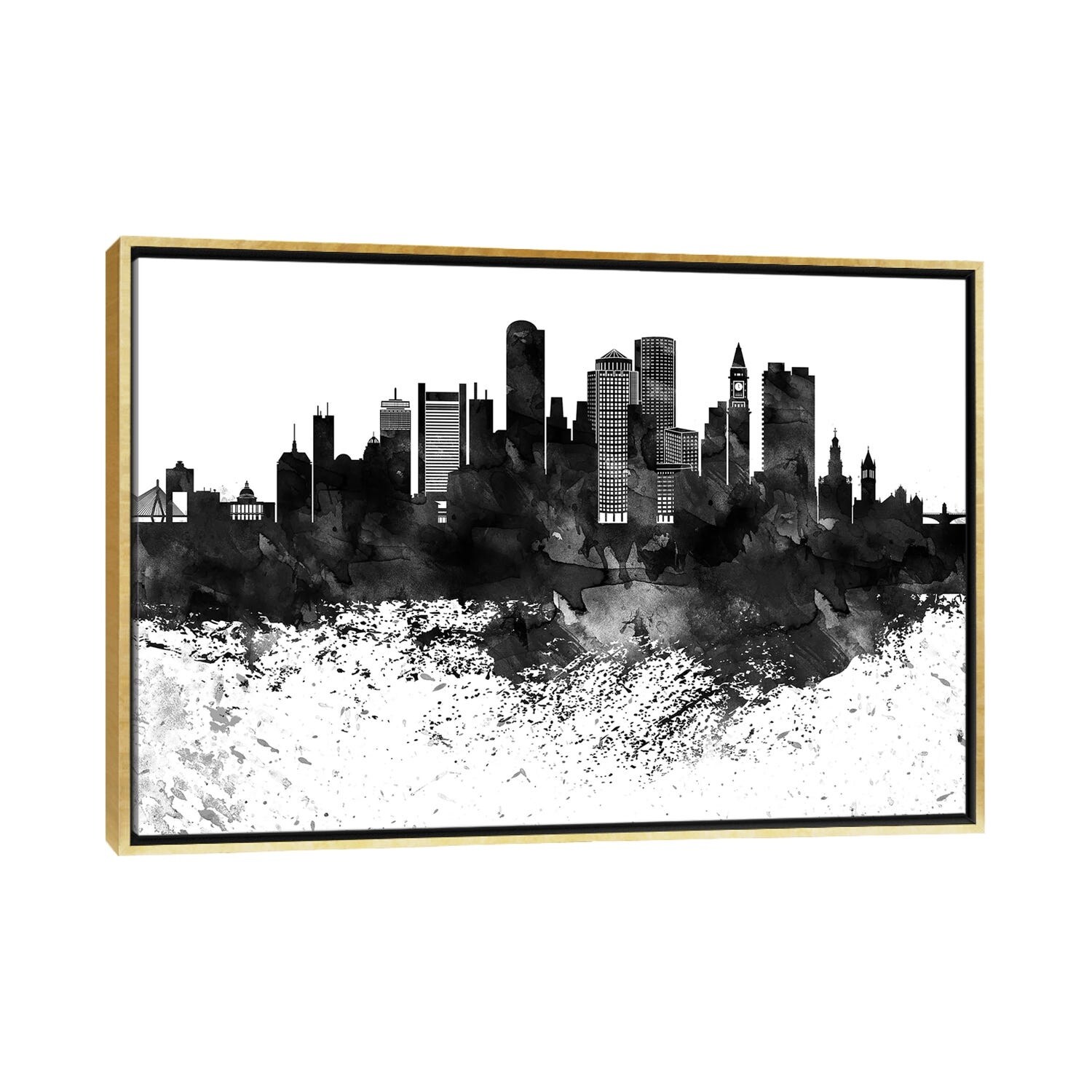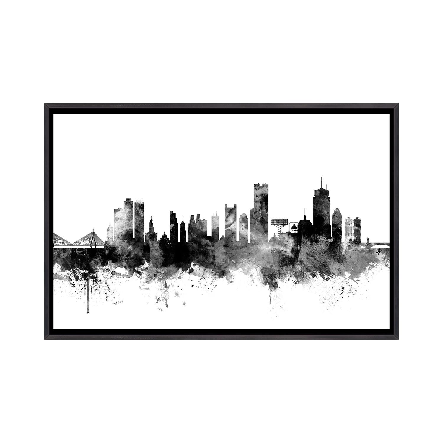 iCanvas "Boston Black & White Drops Skyline" by WallDecorAddict Framed Canvas Print