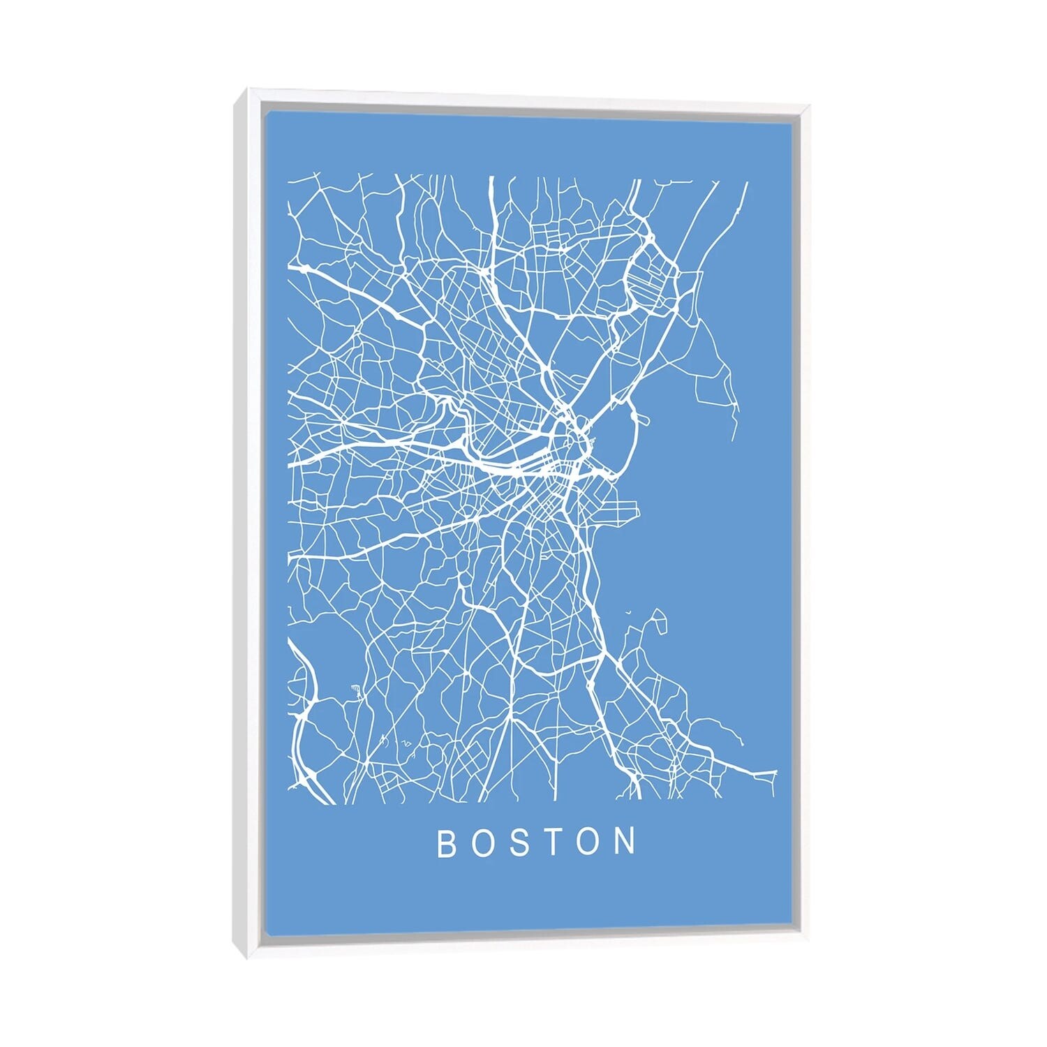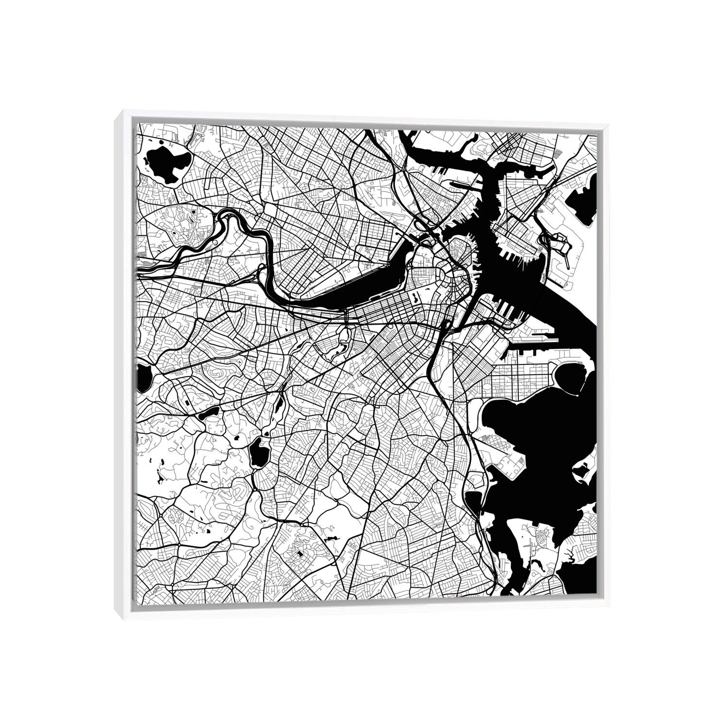 iCanvas "Boston Urban Roadway Map (White)" by Urbanmap Framed Canvas Print