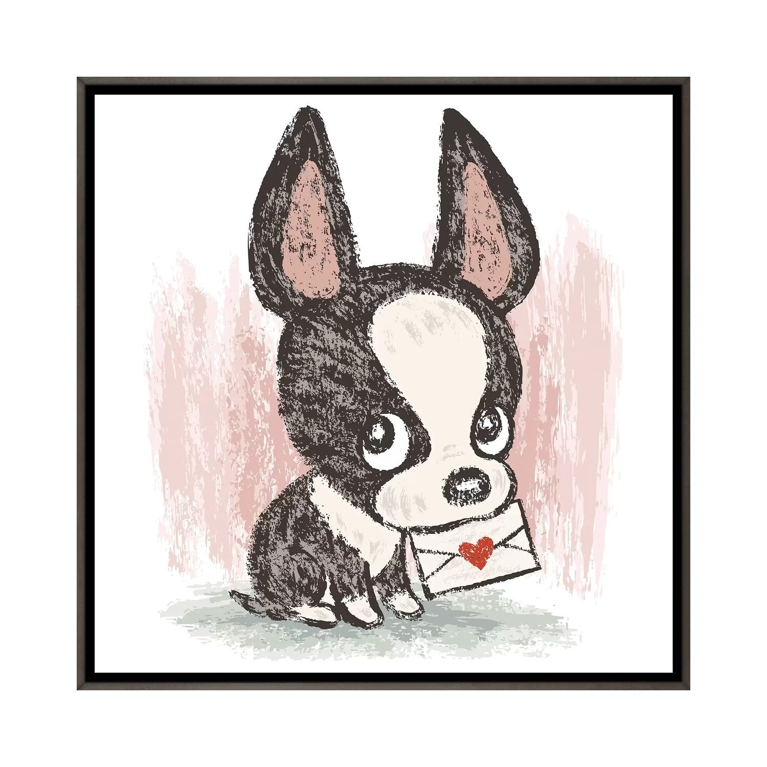 iCanvas "Boston Terrier And Letter" by Toru Sanogawa Framed