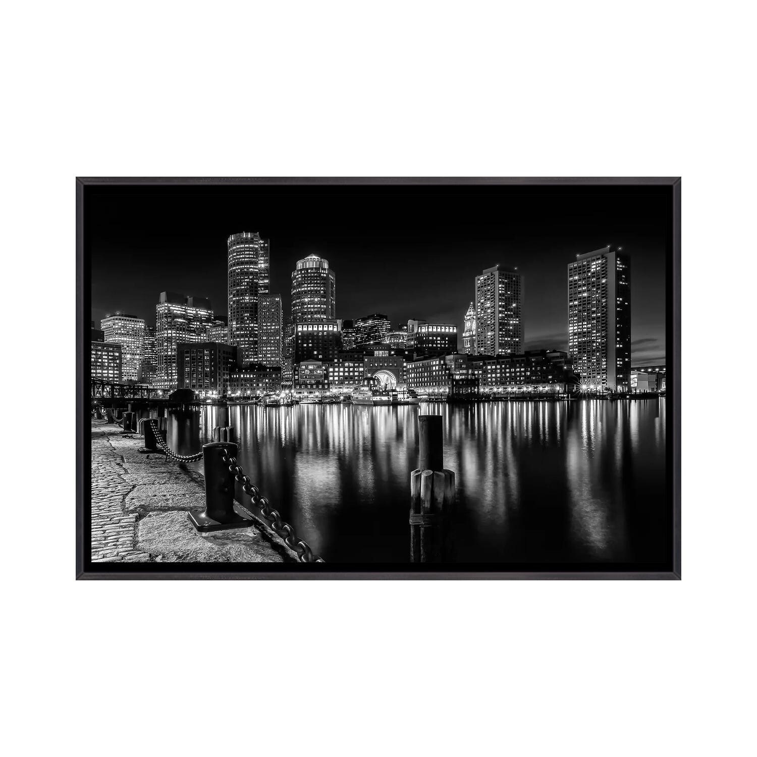 iCanvas "Boston Fan Pier Park & Skyline At Night Monochrome" by Melanie Viola Framed