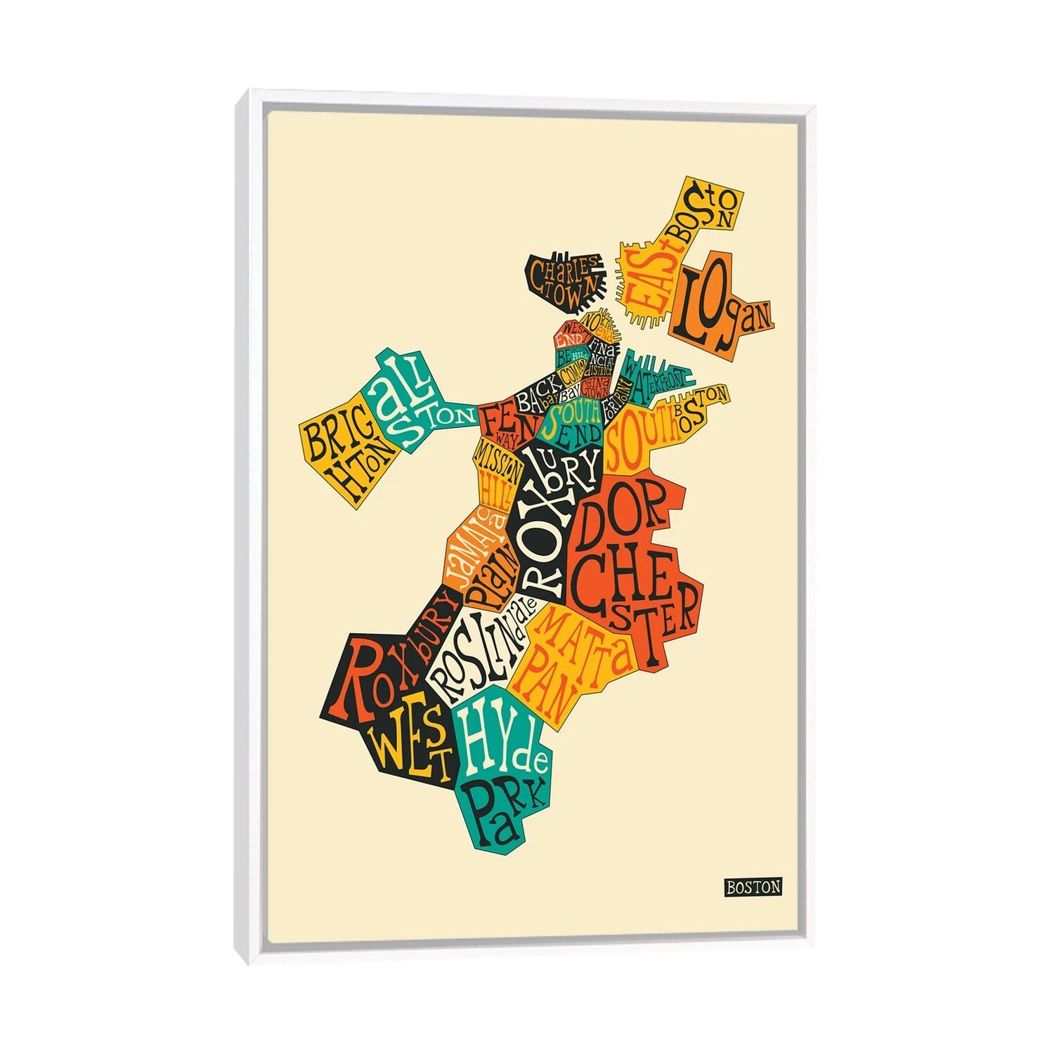 iCanvas "Boston Urban Map (White)" by Urbanmap Framed Canvas Print
