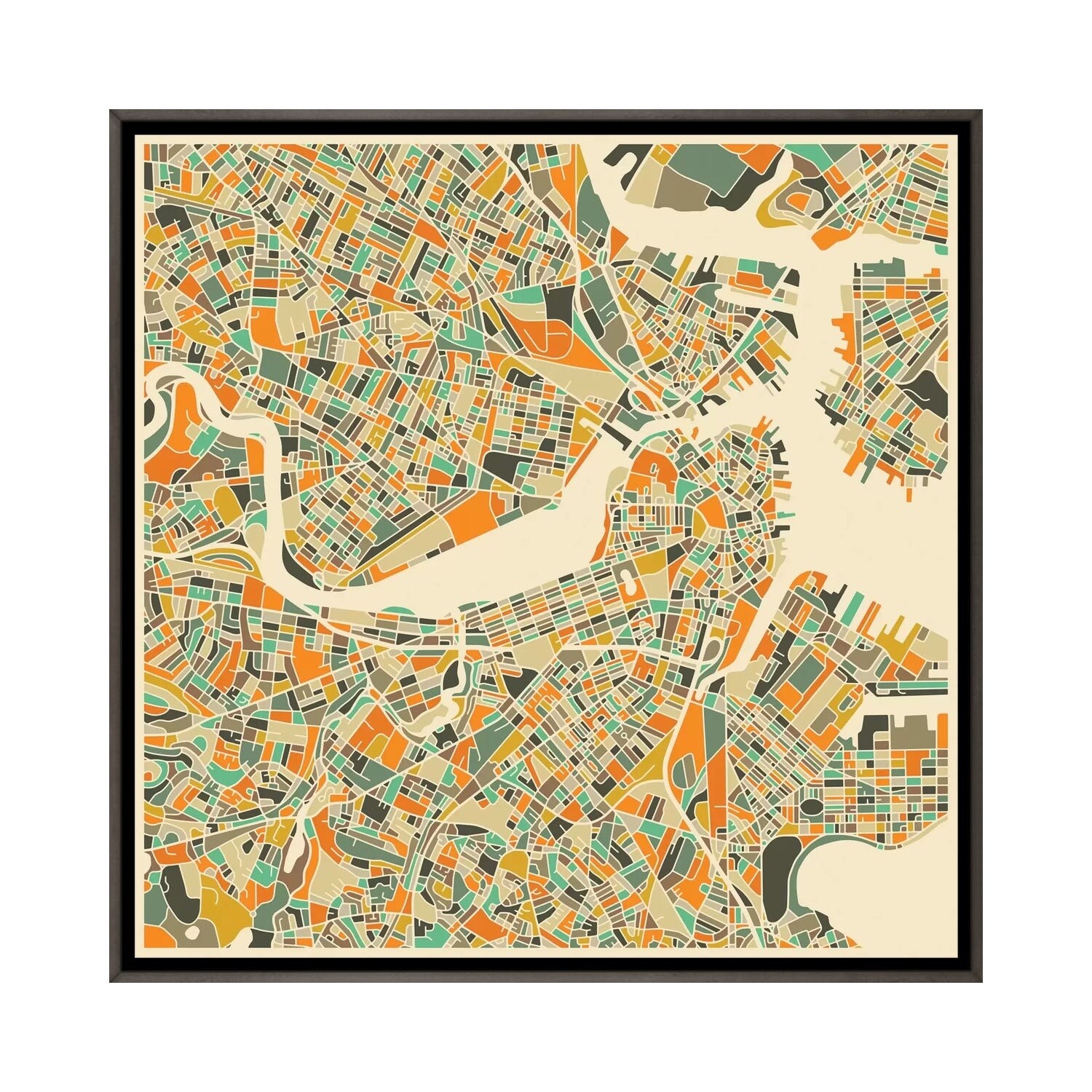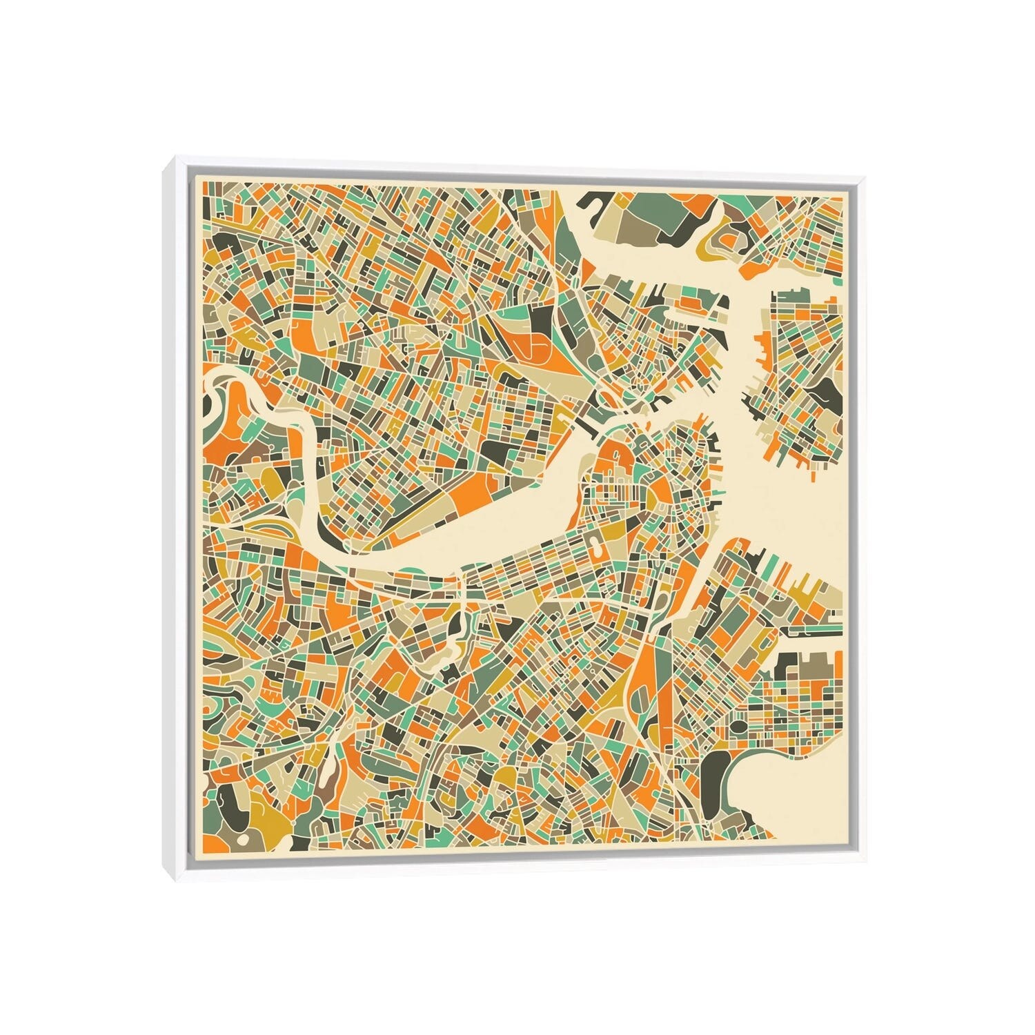 iCanvas "Abstract City Map of Boston" by Jazzberry Blue Framed